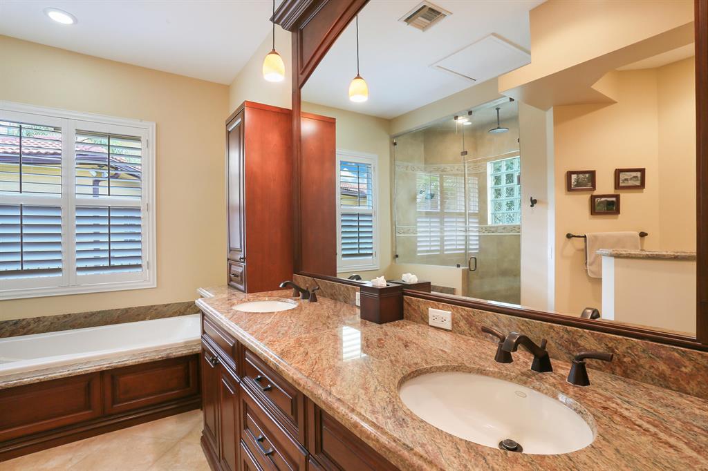 GREAT HOME!! Beautifully appointed & freshly painted cul de sac home. Situated on a oversized lot, lushly landscaped for total privacy, this 5 bedroom, plus office and a gym/ OR 2nd office, 3 full and 2 half bath home, has vaulted ceilings with wood beams, hurricane impact glass windows, newer roof and spectacular entertaining space. The expansive addition to include a master bedroom suite with a study was completed in 2007 along with numerous exceptional renovations: an outdoor oasis; sunny pool & deck, summer kitchen, covered patio and garden area. Stroll to the Estancia Park. Low HOA fee, 24 hour guard-gated community w/ tennis, walking trails & playground. Best ''A'' rated schools. Close to major thoroughfares, shopping, restaurants and houses of worship.