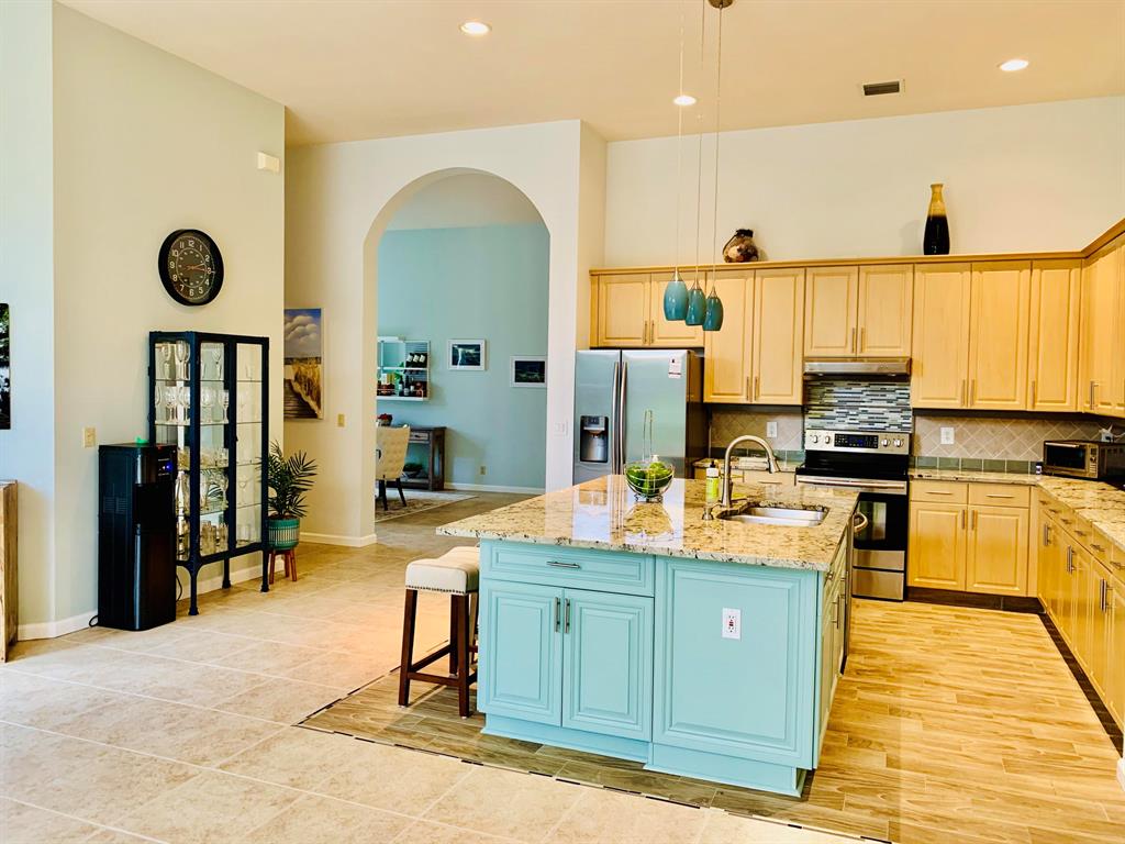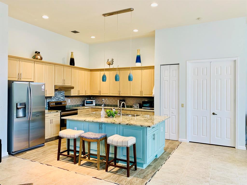 Enjoy the ultimate FL lifestyle in this luxuriously light-filled home, on a large corner lot, fully furnished, and move-in ready. Lovely foyer entry andit boasts over 2,800 sq ft of airy & bright living space, equipped with a fully functioning office, spacious laundry room, 3 fantastic bedrooms. Upgrades include 18'' tiled living area, Jack and Jill bedrooms, 42'' maple kitchen cabinets, and much more. Vaulted 12' ceiling, luxurious master suite with large walk-in closet, beautiful bath with Roman tub, spacious shower, his and her sinks.Beautiful lake view, landscaping, fenced-in back yard surrounded by mango, avocado, guava, lime trees, and more!Community has a resort feel, with gorgeous clubhouse, pool, tennis court, exercise room, and playground.