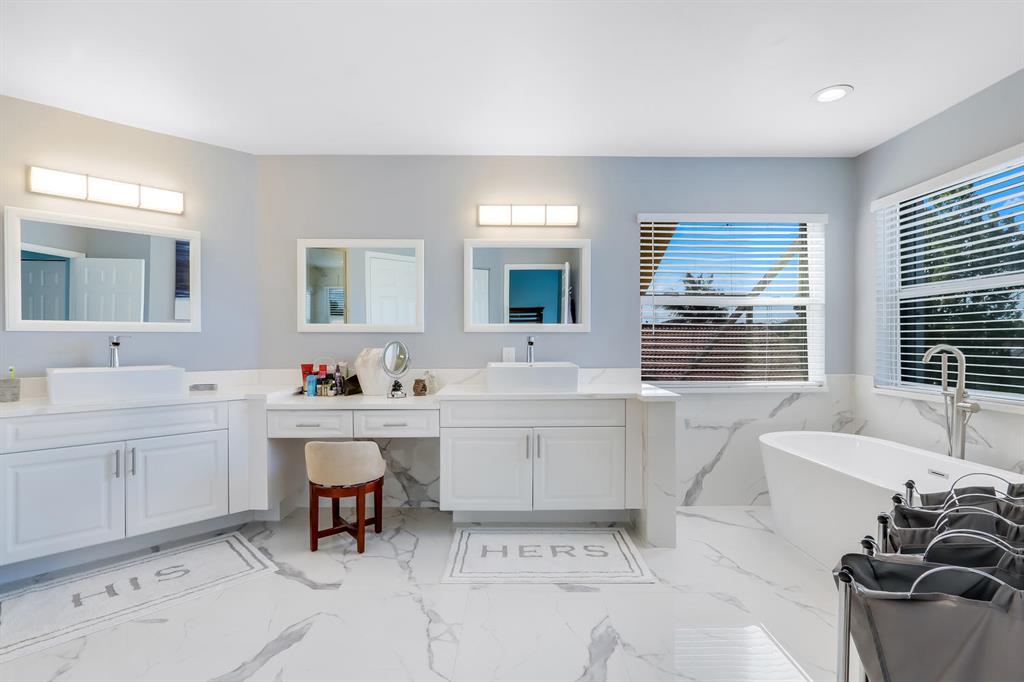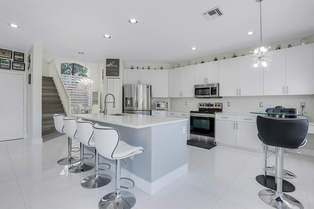 This one will not last!! Beautiful, fully renovated 5 bedrooms, 3 bath, pool home, with almost $200K in recent upgrades! Step inside to the freshly painted main floor which is an open concept layout that includes a formal living area, formal dining area, eat in kitchen, family room, laundry room, one bedroom and one full bath. You will notice a modern style kitchen, with new white quartz counter tops, energy efficient stainless-steel appliances, 32 inches porcelain tiles, new custom window treatments, and stairway. You will also notice that the popcorn has been removed, and that there are new lightings, fans, baseboards, and chandelier. In addition, all the shower doors are custom made. Upstairs you have new floors and quartz in bathrooms.