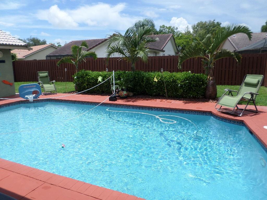 WOW! THIS HOME REALLY IS COMPLETELY MOVE IN READY. METICULOUS OWNERS HAVE UPDATED THIS HOUSE TO PERFECTION. THIS 4/2 OPEN FLOOR PLAN HAS 24" TITLE THROUGHOUT, NEW AC 2018,ALL IMPACT WINDOWS INCLUDING FRONT DOOR. NEWLY RENOVATED KITCHEN WITH GRANITE COUNTER TOPS AND LED HIGH HATS. PLANTATION SHUTTERS ADORN EVERY WINDOW AND FRENCH DOORS IN THE LIVING AREA AND MASTER BEDROOM WHICH OPEN TO THE POOL AREA. HOME FEATURES 5" BASEBOARDS, NEST THERMOSTAT, VAULTED KNOCKDOWN CEILINGS. INSIDE LAUNDRY ROOM WITH ALL NEWER APPLIANCES THOROUGH OUT THE HOME. WATER HEATER IS 3 YRS OLD. SALT WATER POOL NEW DIAMOND BRITE IN 2019. BACK YARD HAS 5 FT WOOD FENCE FOR PRIVACY. TV ON PATIO PLUS 2 MOUNTED LARGE FANS STAY. PERFECT FOR PARTIES AND SOCIAL GATHERINGS. ALL THIS ON CULDESAC STREET.