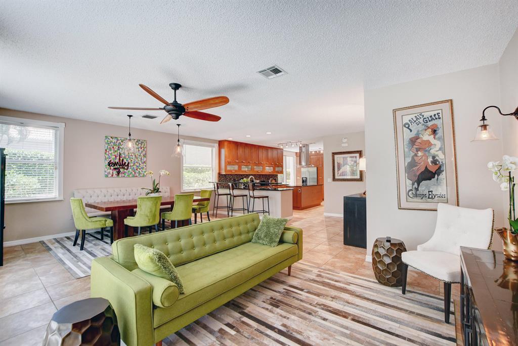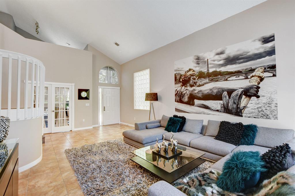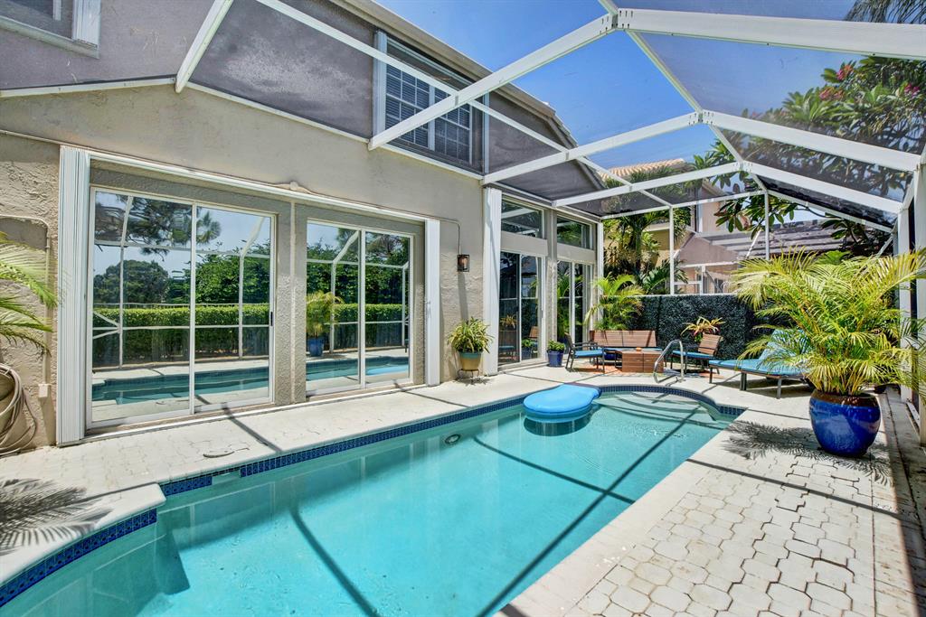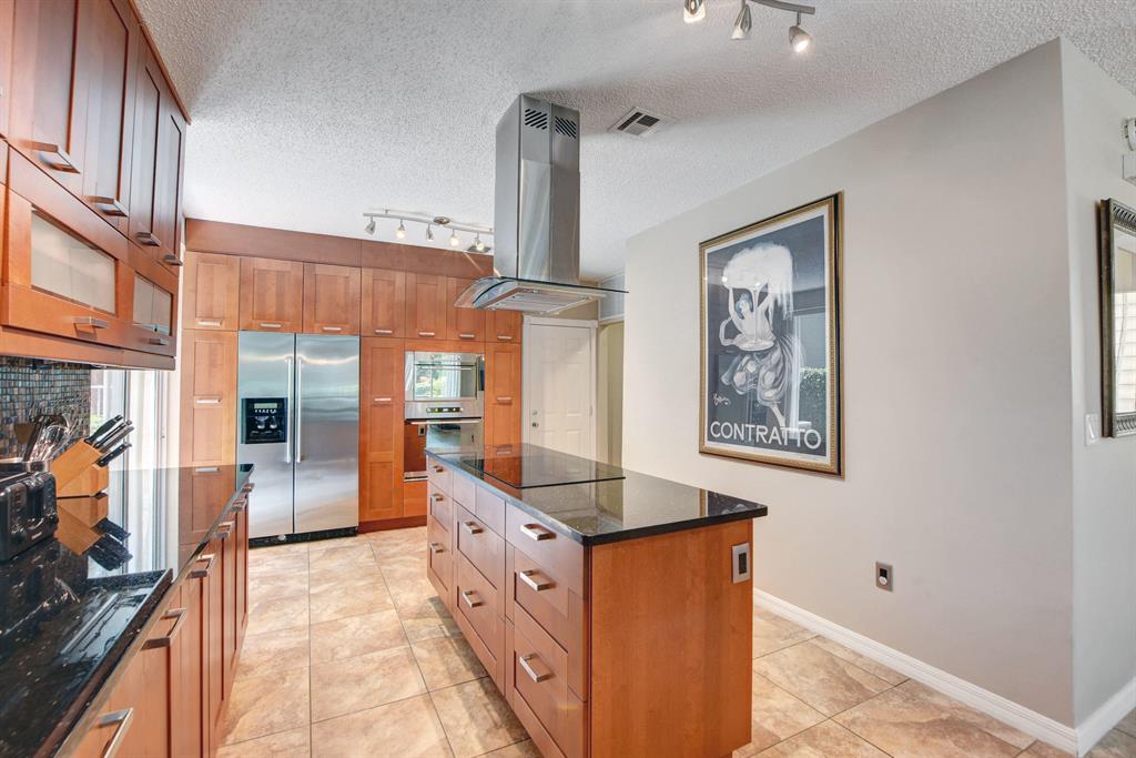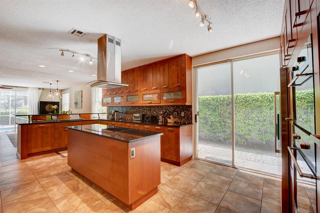 Exceptional 2-story pool home located on stunning golf course lot! This 4 Bedroom, 2 1/2 Bath home overlooks the 1st hole of the Lakes Course with almost 3,000 SF under air, accordion shutters, wide 3 car garage and expansive driveway for ample parking. Long private entryway leads you to this meticulous custom-built home with an abundance of designer features and extras. Large open floor plan, completely tiled 1st floor, with vaulted ceilings, renovated powder room with pedestal sink and formal living room with huge sliders overlooking pool and golf course. Lavish gourmet kitchen with separate induction cooktop, custom cabinetry with soft-close doors, built-in stainless steel refrigerator, convection oven and microwave. Striking granite countertops, mosaic tile backsplash, single bowl
