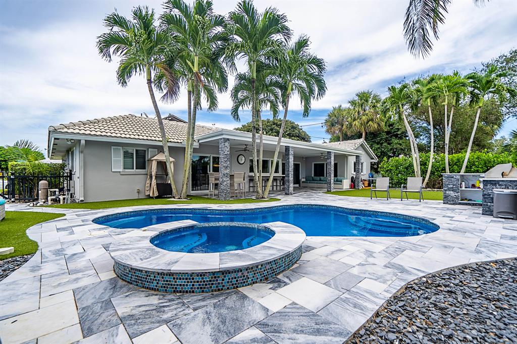 One of a kind 3 bedroom/2.5 bathroom modern home in desirable Camino Gardens, the entire backyard lot is comprised of artificial grass outside and marble pavers with slate stone columns, newly surfaced pool with custom Hawaiian Blue color, multicolor led lights, jacuzzi with waterfall and new back splash tile throughout. Rain censored sprinklers, Outdoor kitchen with quartz counter tops, 42 inch built in ''Twin Eagles'' grill and slate stone exterior facade, custom Atlas Concorde Italian porcelain gray wood tiles, and all SS Electrolux appliance including full size convection double oven, refrigerator, wine refrigerator, gas Stove top white quartz counter tops , to many extras to list, will not last, contact James for your preview