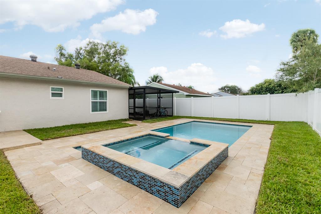 Exquisitely remodeled Boca Raton home with NEW HEATED POOL & SPA and travertine patio. NEW kitchen boasts solid wood cabinets with tall uppers and under-mount lighting, real stone countertops, SS appliances. ALL NEW bathrooms elegantly designed with glass doors. Dual-pane insulated hurricane windows throughout with custom plantation shutters and impact doors. ALL NEW recessed LED lighting, fans, tankless water heater. ALL NEW landscaping, sod and irrigation, PVC privacy fence, hidden storage shed, BBQ area and more. Part of garage converted to 3rd bed/den. Low HOA keeps neighborhood looking great and provides community pool, kid's pool, bike trail, basketball, racketball & tennis courts. A SCHOOLS! Perfectly located near shopping, mall, Turnpike, I-95, airport, parks, beaches and more!