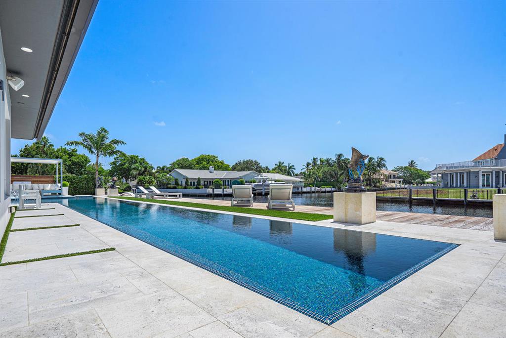 This incredible waterfront home in Bay Colony showcases stunning finishes, and gorgeous views. Artfully designed indoor/outdoor living spaces which include a chef's kitchen with onyx island and quartz countertops, gas stove, floor to ceiling wine fridge, butlers pantry, and wet bar. This unique floor plan offers an expansive master suite, well appointed guest bedrooms, gym, and office. Impact glass windows/doors throughout including a wide opening sliding door, creating the ultimate outdoor experience. Custom designed pool is the perfect backdrop to your waterfront views. Souther exposure provides year round sun. Brand new elevated seawall/dock, floating paddle board dock and so much more.