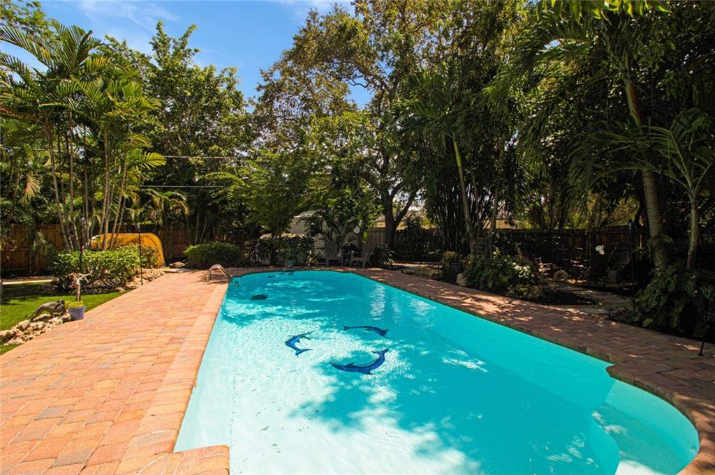 This home is full of Croissant Park charm! Great curb appeal w/winding paths to front door + side yard, lush landscaping, front porch w/triple impact windows. New solar panels. Driveway w/shade sail. Foyer w/window. Large bright living rm. Kitchen is open to family room w/breakfast bar- wood cabinetry, w/large pulls, quartz counters, light fixture w/dual fans, stainless appliances + large pantry w/frosted glass doors. Family rm is large w/floating wall unit + double french door to covered patio. There are 3 nice sized bedrooms- the largest has dual closets. The fenced backyard is truly a tropical oasis with covered brick paver patio, professional designed landscaping, lighting, winding paths, sitting areas for bbq pit, all around a beautiful pool. Separate laundry rm. New PVC plumbing.