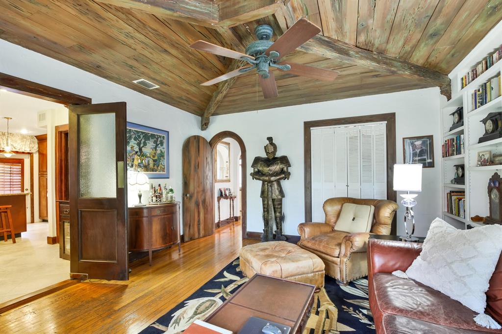 Designed by famed architect, John Volk, this home is named Villa Primavera and is listed on the Historic Registry of Homes. Built in 1926 and 1 of 5 John Volk's first homes in Old Northwood. Main home and guest house have original architectural details throughout with Pecky Cypress ceilings and doors, iron banister, Moorish & Spanish inspired details and arches, inlaid tiles and ornate stucco. The living room boasts 17' ceiling with Pecky Cypress beams and original fireplace. This home is a historic masterpiece and meticulously preserved. Kitchens and bathrooms are updated. 2 1/2 car detached garage includes a covered patio overlooking pool/spa and lushly landscaped property. Remodeled cottage for family, friends or income. Featured in the ''Candlelight Home Tour'' held every December.