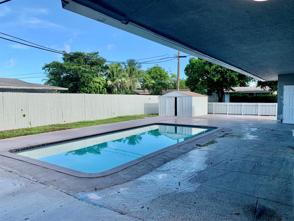 Pool home for under $300k in South Florida! This 1455 square foot home sits on a corner lot with circular driveway, with room for a boat or RV on the side of the home, pool in the backyard, and covered patio for entertaining, all with NO HOA. Home is freshly painted inside and out with luxury wood look vinyl flooring, beautiful kitchen/bathroom cabinetry, granite counters, stainless steel appliances, and all new hardware and fixtures. Layout features include 3 bedrooms, 2 bathrooms, with a den, interior walk in laundry room, and great living room space for family events. This will sell fast so run, don't walk!!!
