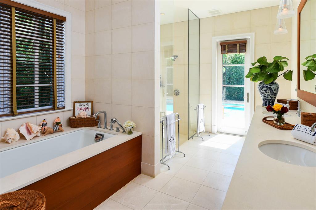 Open living spaces, trey ceilings, beamed ceilings, custom molding, French doors and natural southern light. The expansive master suite opens to the pool and includes his and her closets along with a library. Each of the three guest bedrooms has en suite bathrooms. The lush landscaping creates a private setting for the covered patio, pool and garden.