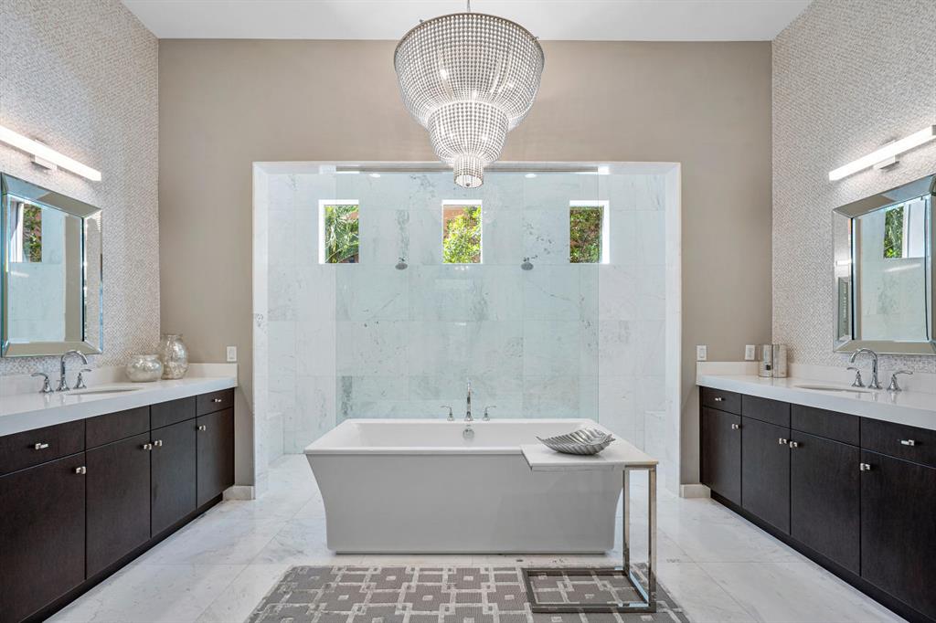THE MOST stellar appointments in this 6 bed or 5 plus theater, 7.5 bath home w/ loft, & library expanded custom Wakefield model. On a .40 acre lot, with enormous side yard & long lake views, this coastal modern Hamptons-esque home is professionally designed w/ the absolute highest end finishes: custom wood & lacquer cabinetry thru-out, incredible window treatments comprised of plantation shutters layered w/ impeccable draperies & hardware, stunning lighting, white wash beach wood flooring thru-out & sumptuous wallcoverings accenting the spectacular architecture. A stunning white gourmet kitchen quartz countertops, top of the line appliances, a private Master suite with an elegant & massive Master bath, inside & out entertaining areas, summer kitchen, oversized heated saltwater pool.