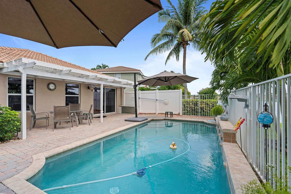 Come see this bright and airy 3 bedroom, 2 bath home with stunning lake views and private pool. This former model home has an extended side yard, perfect for entertaining, and features new floors, new kitchen and bathrooms and is ready for its new owners to walk in and unpack. Schedule your private showing today. Briar Bay at Liberty Isles offers 24 hour manned guard gate, fitness center, olympic style pool!