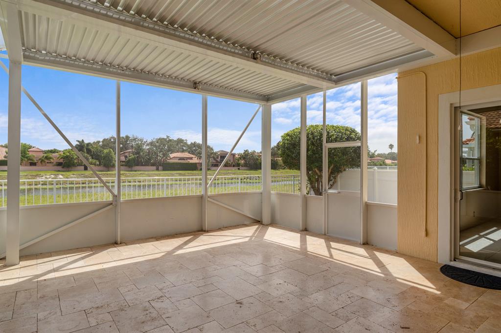 This is a one of a kind home located in the gated community of Costa Brava, a Boca Pointe Community. Memberships are offered, but not mandatory. This home has hurricane impact windows throughout and offers many custom upgrades and unique features you will not see in other homes. Walk through newer impact front doors to soaring views from the floor to ceiling impact windows! Located directly on a wide canal with no rear neighbors and a side view of a golf course, you will relax in the over-sized screen in patio that features a travertine tiled floor and a retractable roof! Open it up to star gaze or have it closed to enjoy weather free dining al fresco.