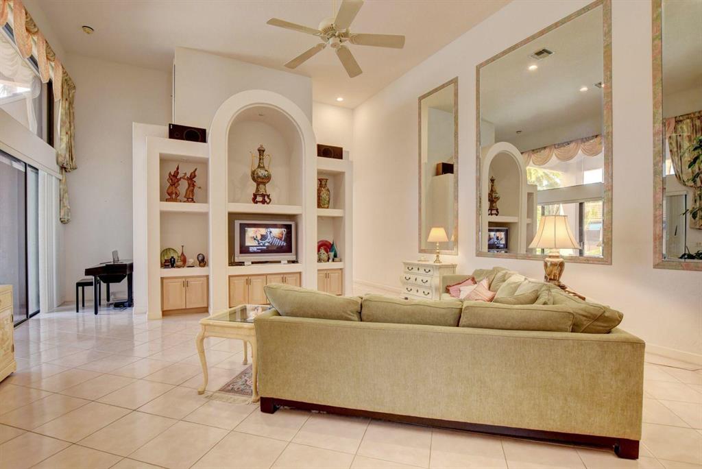 This extraordinary courtyard home is located on a double lot and is one of the largest courtyard homes you will ever see. This one story home located in the award winning Country Club at Broken Sound features volume ceilings, open floor plan, neutral colors throughout, shutters, & partial impact windows. All bedrooms face out to the resort style courtyard featuring an oversized pool, under cover lanai with a built in barbecue and a guest house with 2 bedrooms, 2 full baths attached with a den area and kitchenette. The roof is 7 years old, with three newer A/C's. Enjoy the large screened in patio that overlooks the back yard, with lots of grass for dogs and children. What a fabulous corner lot in which to make this home your own!