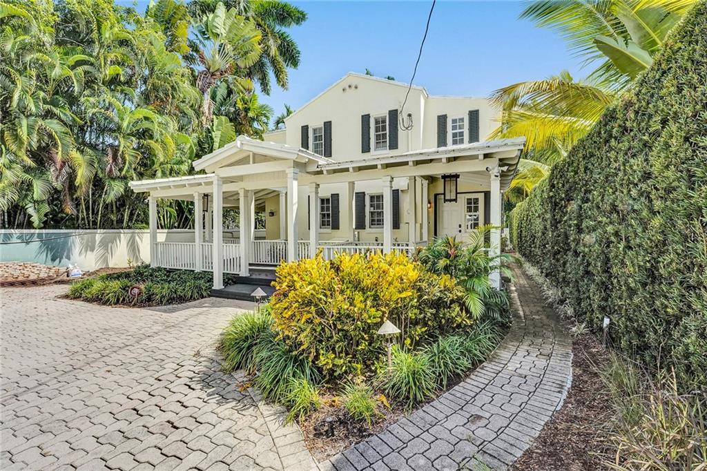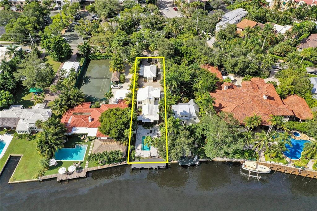 Location, Location. Waterfront home nestled in between the New River and Las Olas Blvd. This tropical and gated home combines Old Florida charm with a Key West ambiance. Included is a separate guest cottage, perfect for visitors or potential income. Main house features 3 bed, 2.5 bath, gorgeous espresso wood floors and jaw dropping cathedral ceilings. Dual master suites, one on the ground floor and one upstairs. The house is complete with a classical wrap around porch and garage. Enjoy 50' of prime water frontage with a resort like backyard featuring an updated pool, travertine patio and dock. This highly desirable property is also well suited for new construction. 11,000 Sq ft. Don't miss this opportunity one of only 7 properties located directly on the New River.