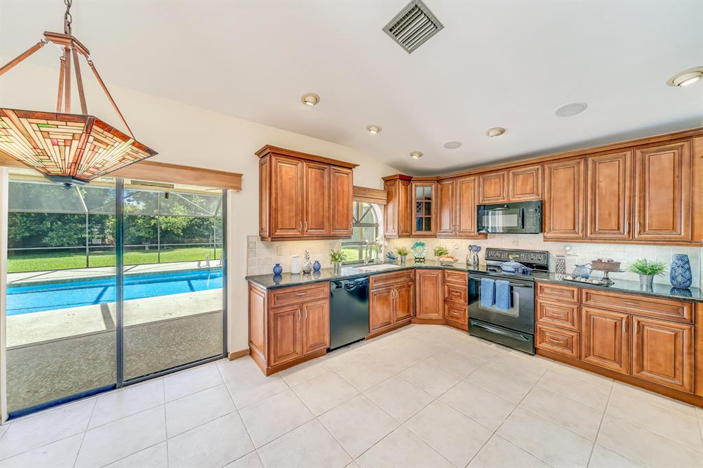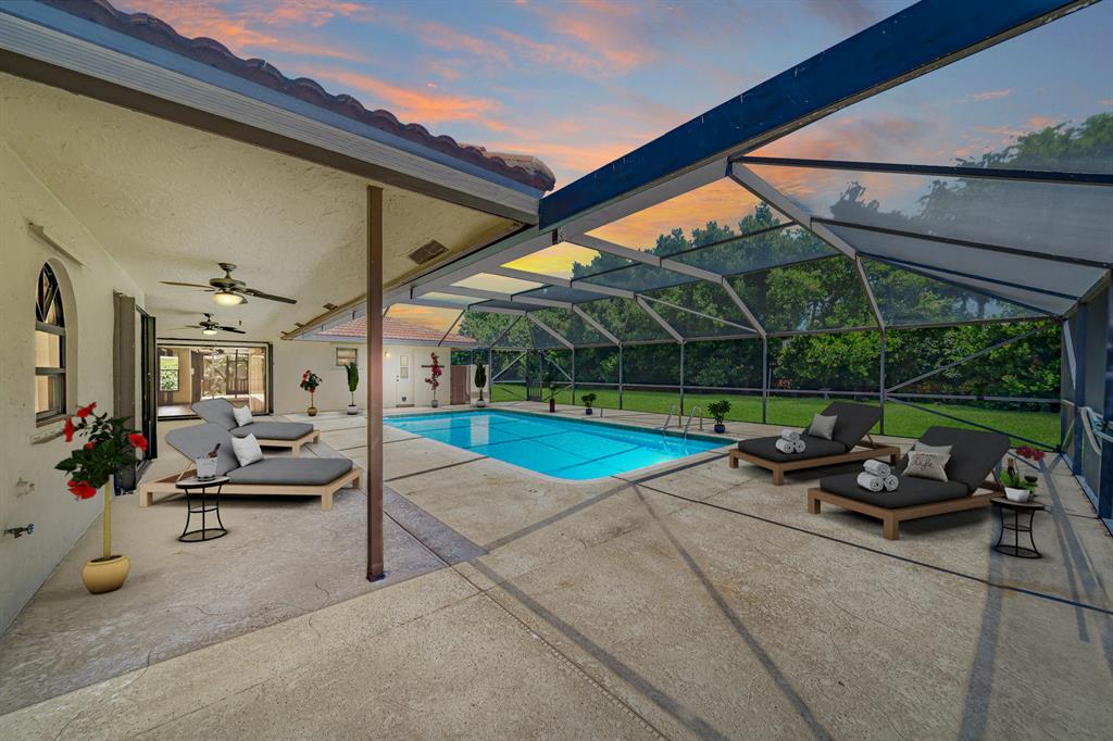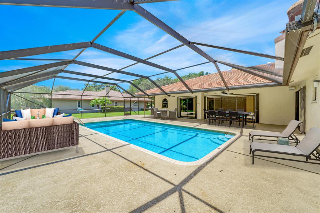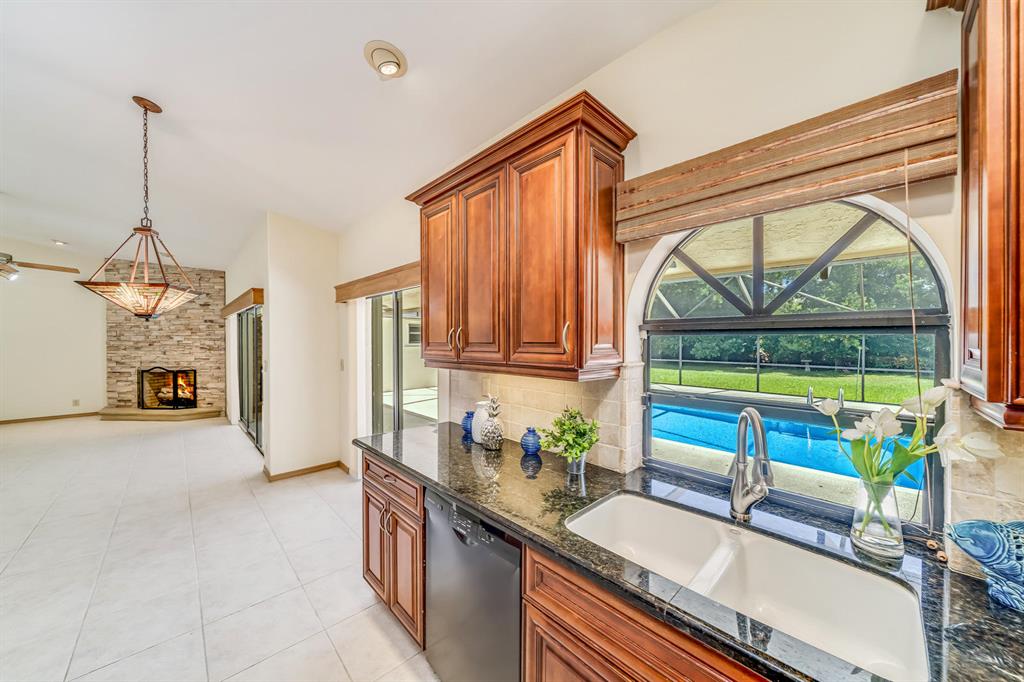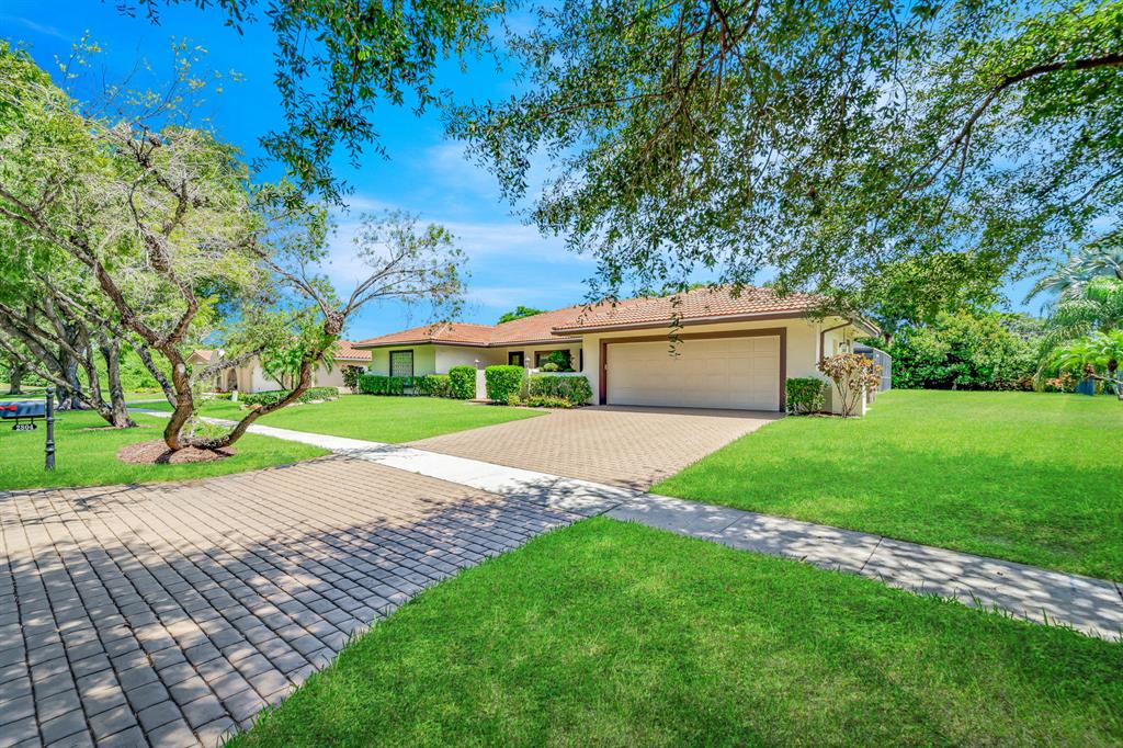 Located in Boca Raton Bath & Tennis Club (No membership required) 4 bedrooms, 2 1/2 bathrooms, 2 car garage pool home on a huge lot with tons of privacy! This open and spacious home features vaulted/cathedral ceilings, tile flooring throughout, & a gourmet chefs kitchen w/granite countertops with tumbled marble backsplash, high end wood cabinetry, newer appliances including a Bosch dishwasher, big pantry and more! Just off the kitchen is the family room w/wood burning stone fireplace, recessed lighting and 3 door wide sliders to patio/pool & backyard. All 3 bathrooms are updated! 2 new A/C 2 zones! New roof from 2018! Tankless hot water heater! Inside laundry room w/Samsung Steam washer and dryer. Paver driveway.