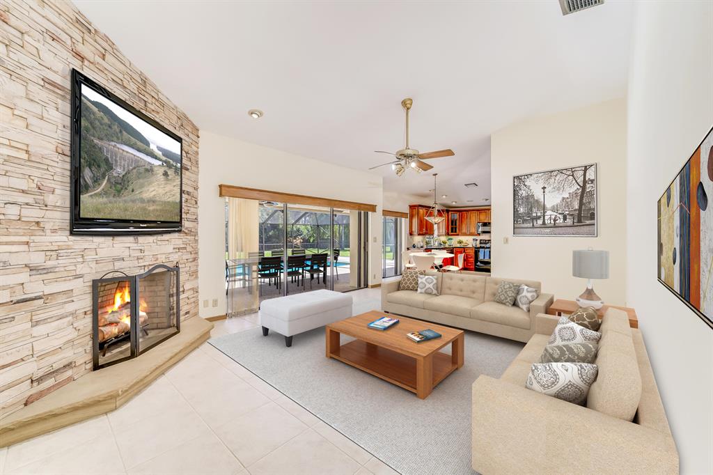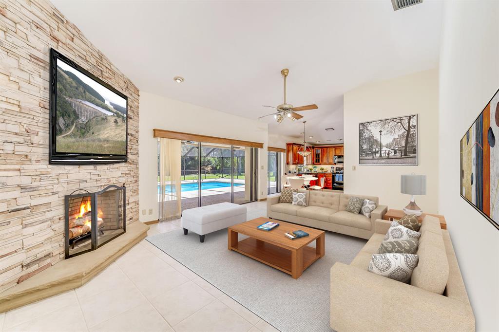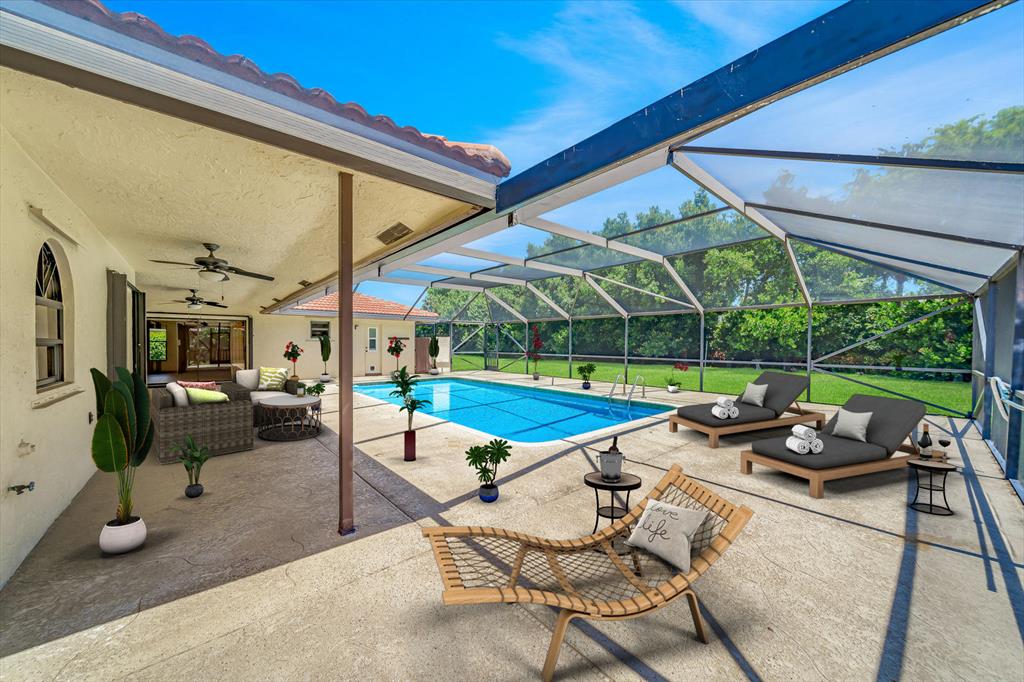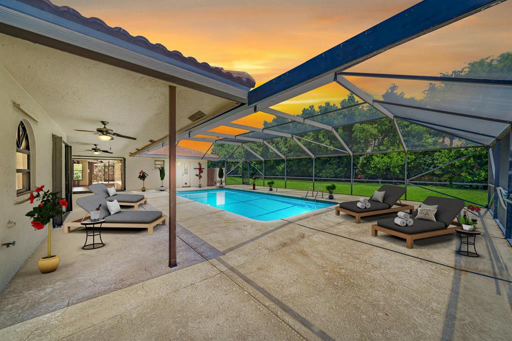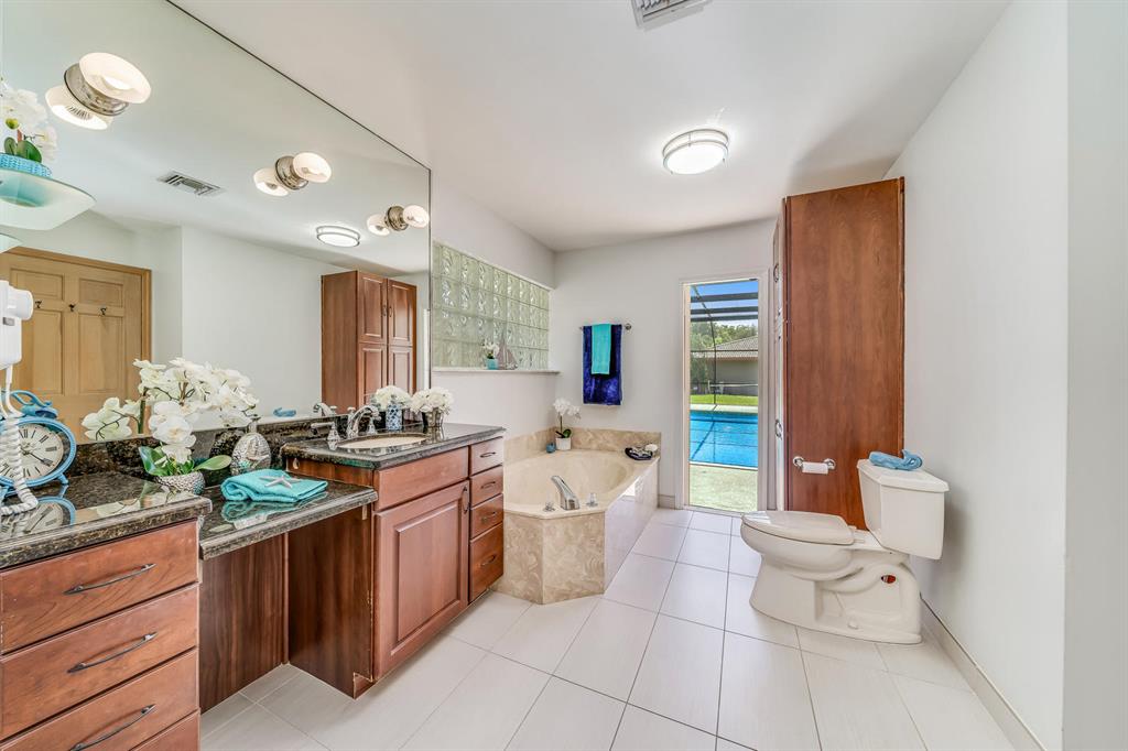 Located in Boca Raton Bath & Tennis Club (No membership required) 4 bedrooms, 2 1/2 bathrooms, 2 car garage pool home on a huge lot with tons of privacy! This open and spacious home features vaulted/cathedral ceilings, tile flooring throughout, & a gourmet chefs kitchen w/granite countertops with tumbled marble backsplash, high end wood cabinetry, newer appliances including a Bosch dishwasher, big pantry and more! Just off the kitchen is the family room w/wood burning stone fireplace, recessed lighting and 3 door wide sliders to patio/pool & backyard. All 3 bathrooms are updated! 2 new A/C 2 zones! New roof from 2018! Tankless hot water heater! Inside laundry room w/Samsung Steam washer and dryer. Paver driveway.