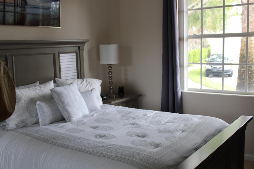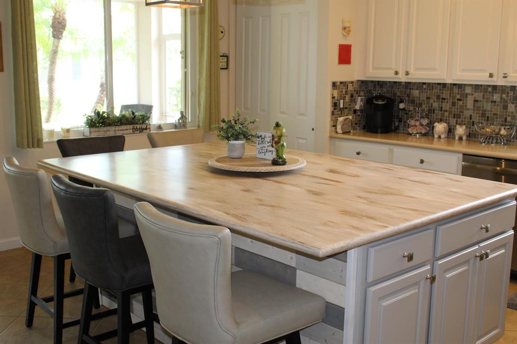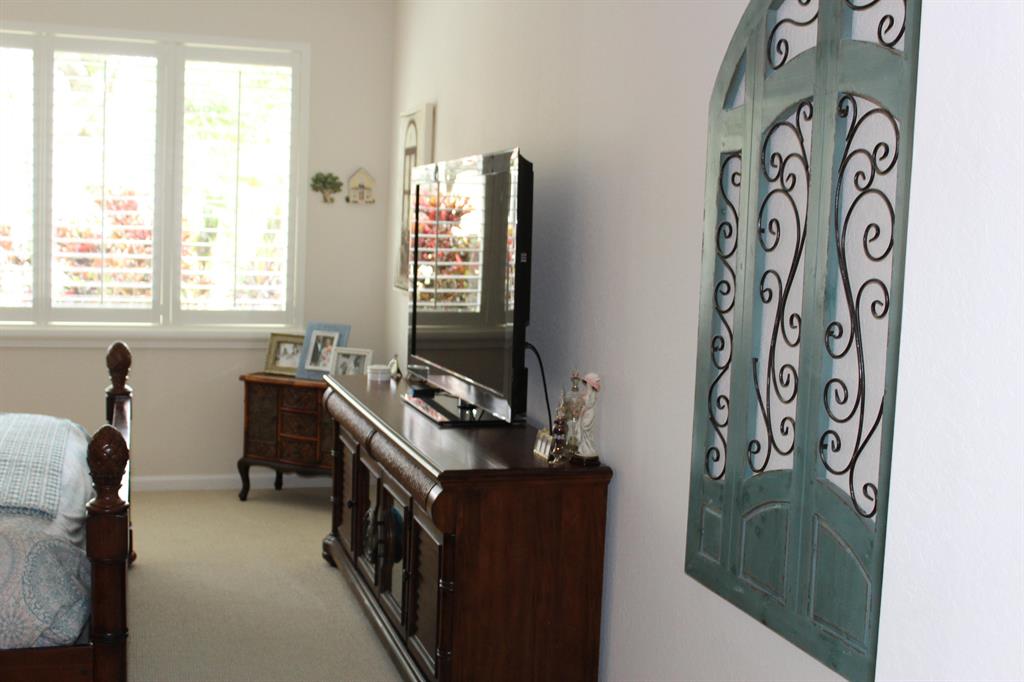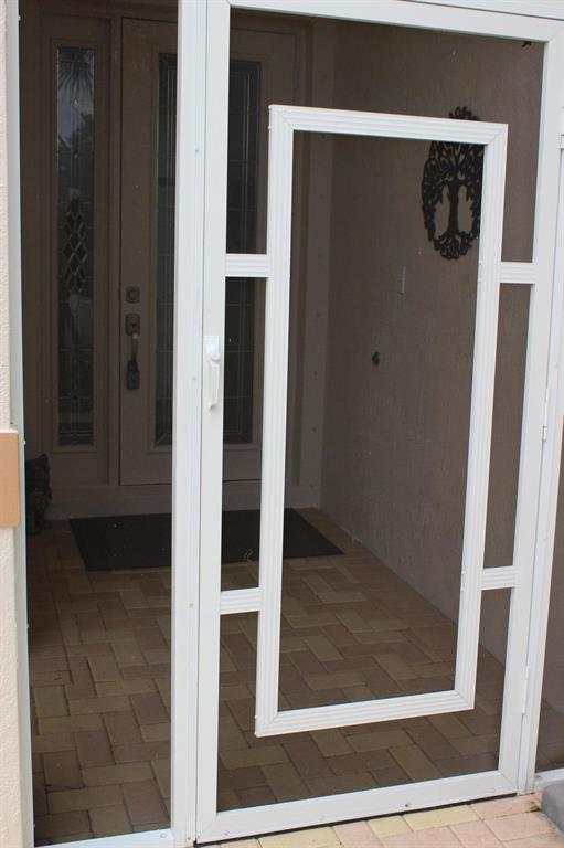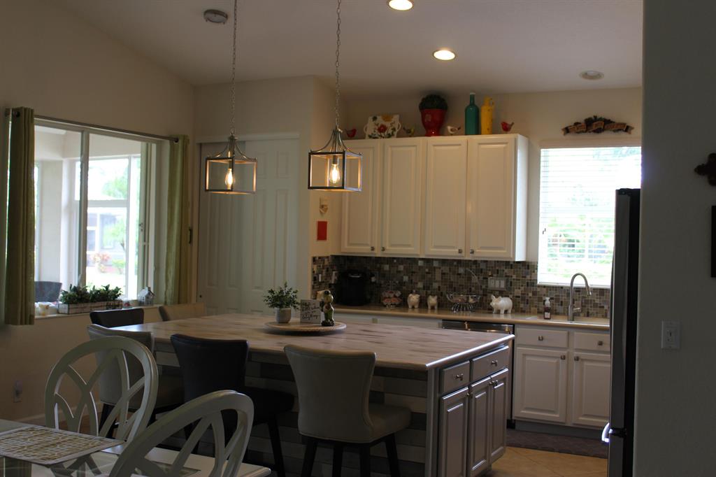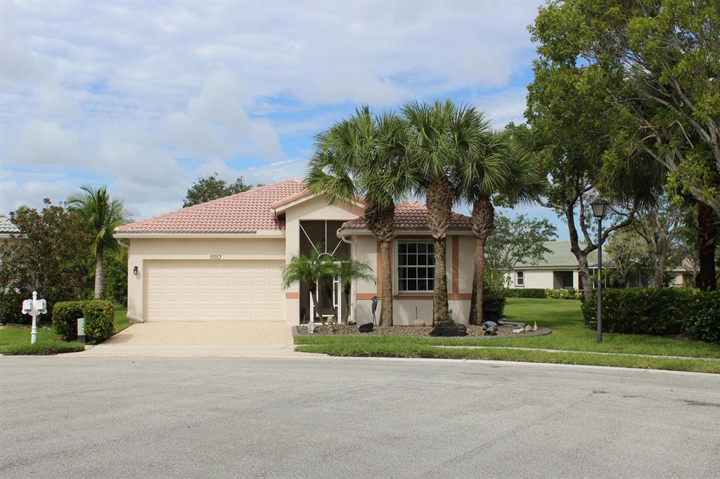 Move-in Ready! Lovely open floor plan set on a quiet, private super large lot on a cul-de-sac. Exterior newly painted. 20'' diagonal tile in common living areas. Large custom cabinets/shelves in master closet. Plantation shutters living room and master bedroom. Large master bath with dual sinks and whirlpool tub. New custom island in kitchen w/built in wine cooler. Refinished 42'' kitchen cabinets. Stainless steel appliances. Updated plumbing fixtures and seamless shower doors. Beautiful barn door installed for privacy for 2nd bdrm/bath area. Accordion shutters. Screened in front door enclosure and patio. 24/7 guard gated 55+ community with extensive amenities. 3 pools, spa, tennis, pickleball and social activities. Short drive to shopping/entertainment. A must see!