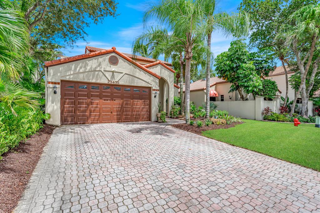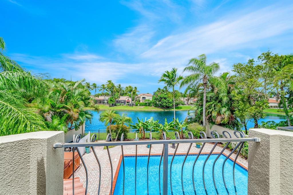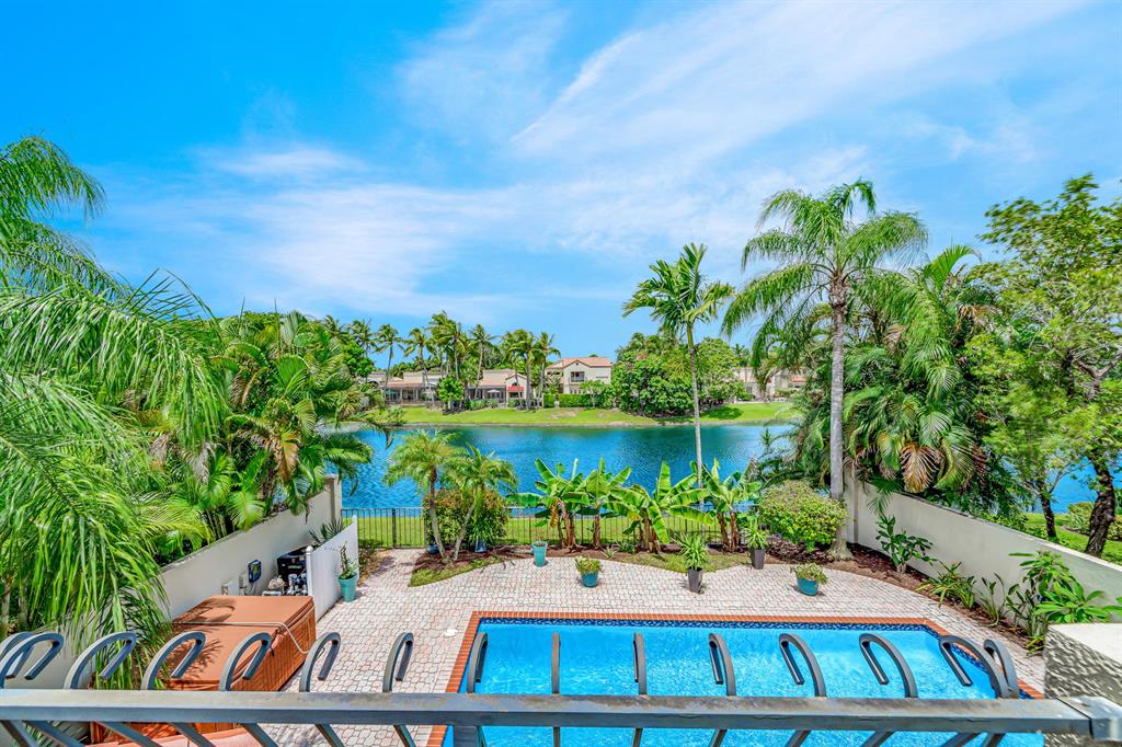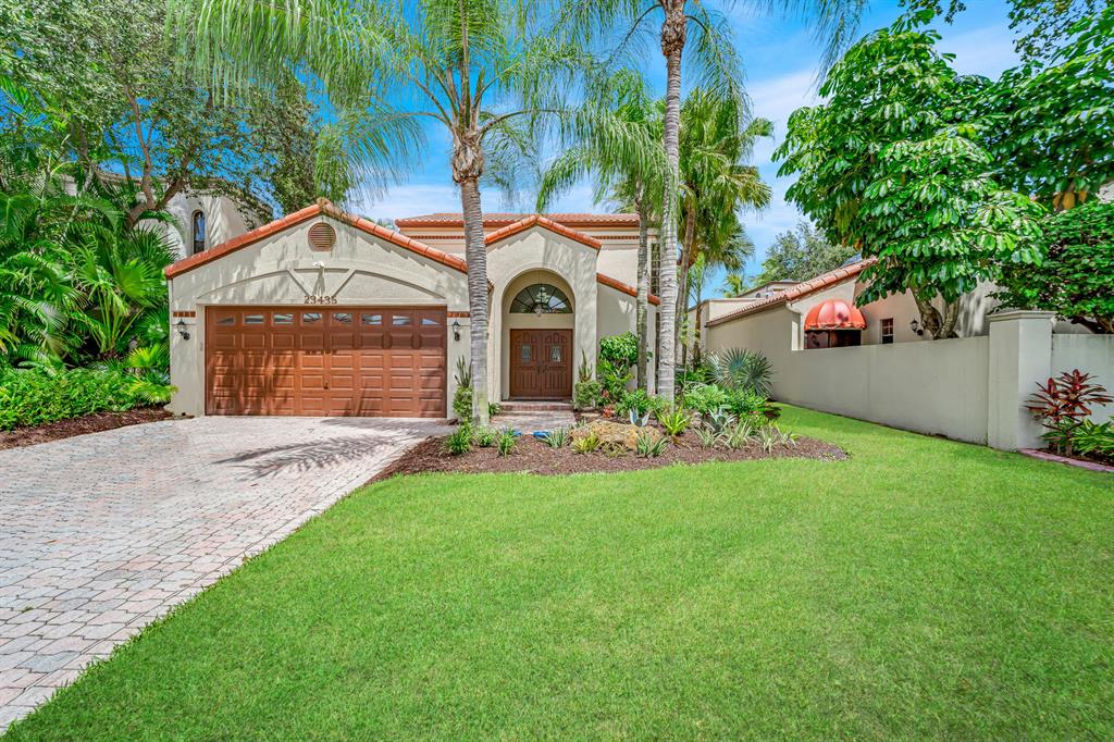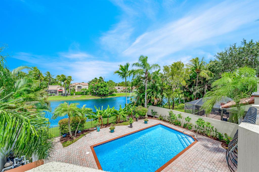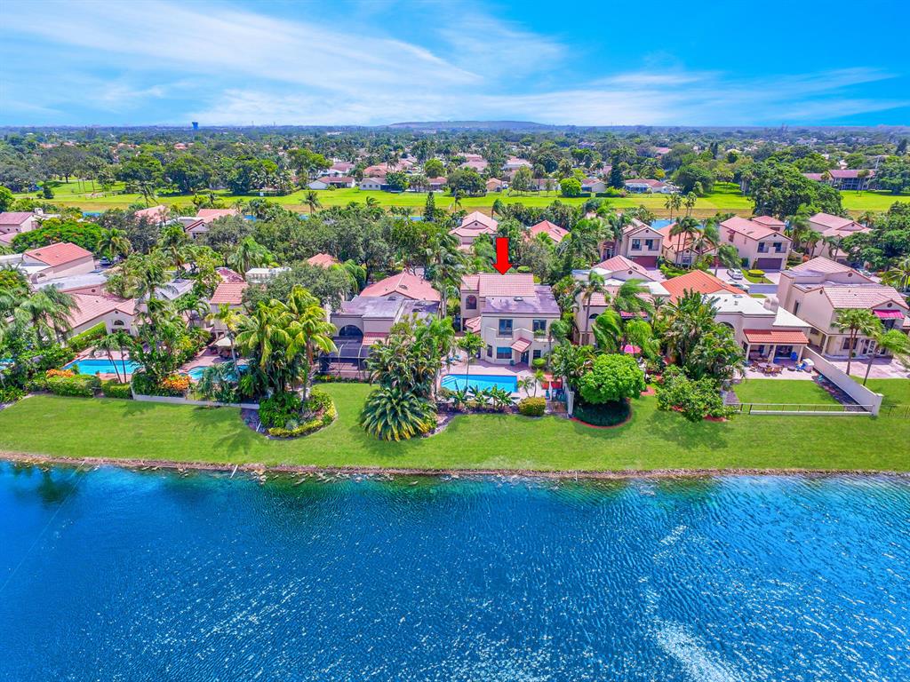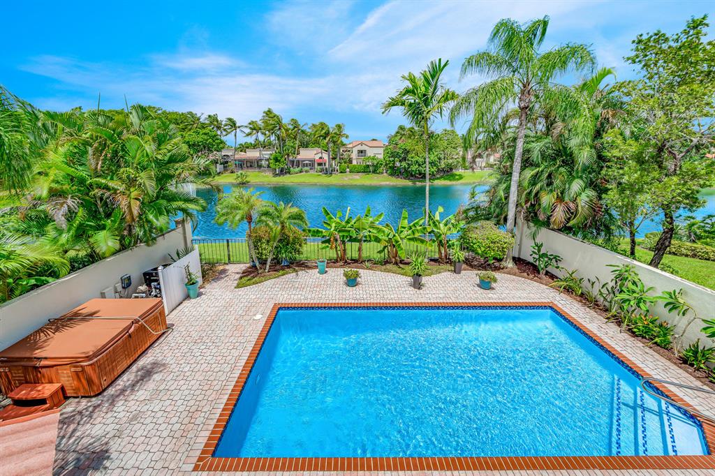 Wow! Spectacular Mediterranean waterfront & pool home features 4 bedrooms, 2.5 baths and 2 car garage. Located in the prestigious community of Valencia at Boca Pointe with tons of landscaping, grassy area and more! Dramatic entrance w/soaring high, volume ceilings. Enjoy the sense of openness, volume, & space. Tile flooring on a diagonal throughout the downstairs living area. New LED lighting throughout. Everything is oversized....Huge living and dining room...family room off kitchen has a sunny eat-in breakfast nook,
