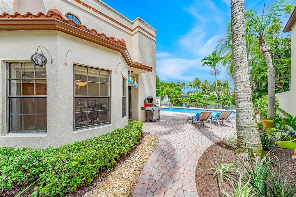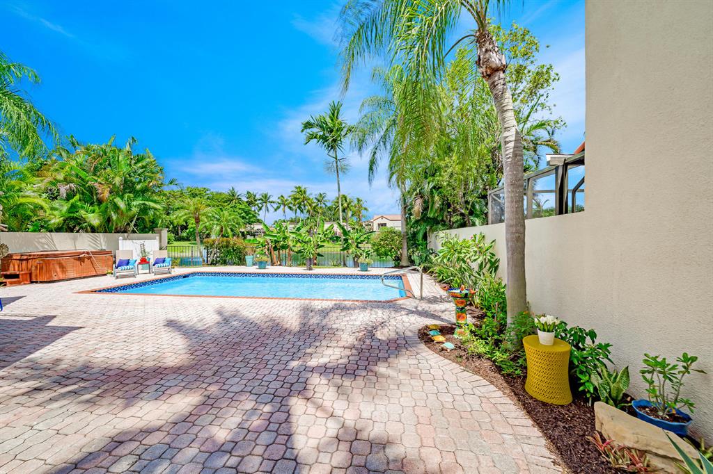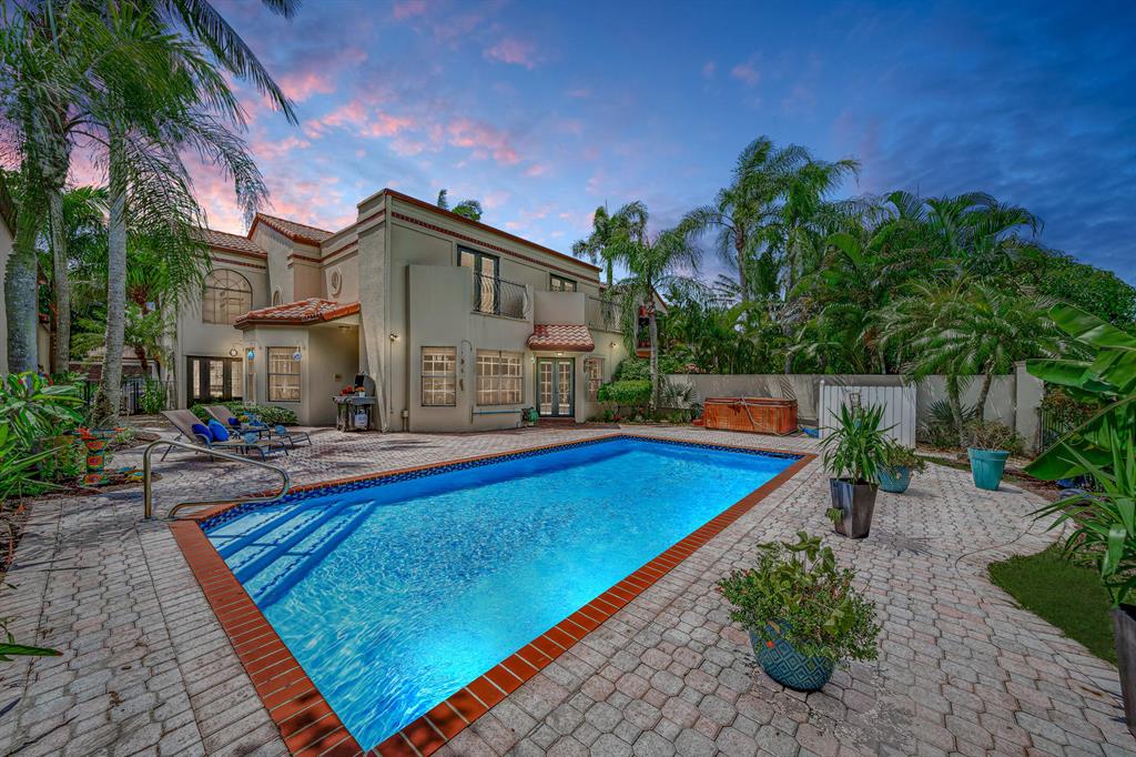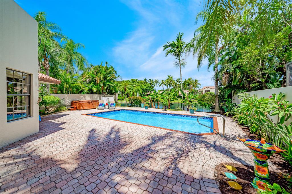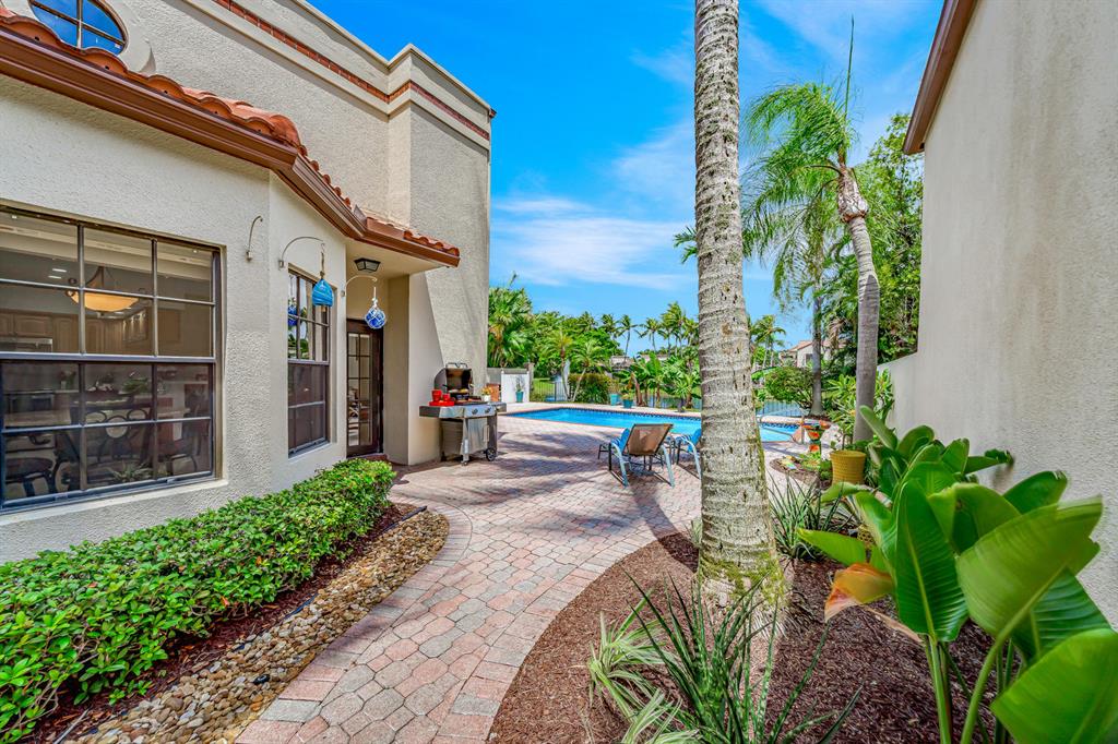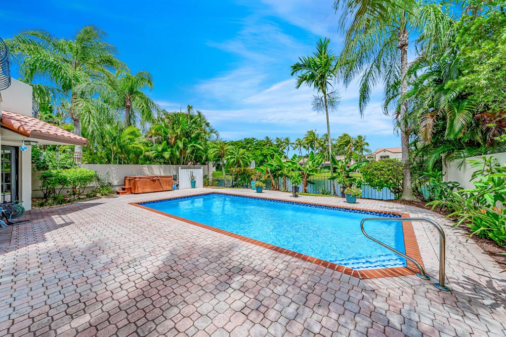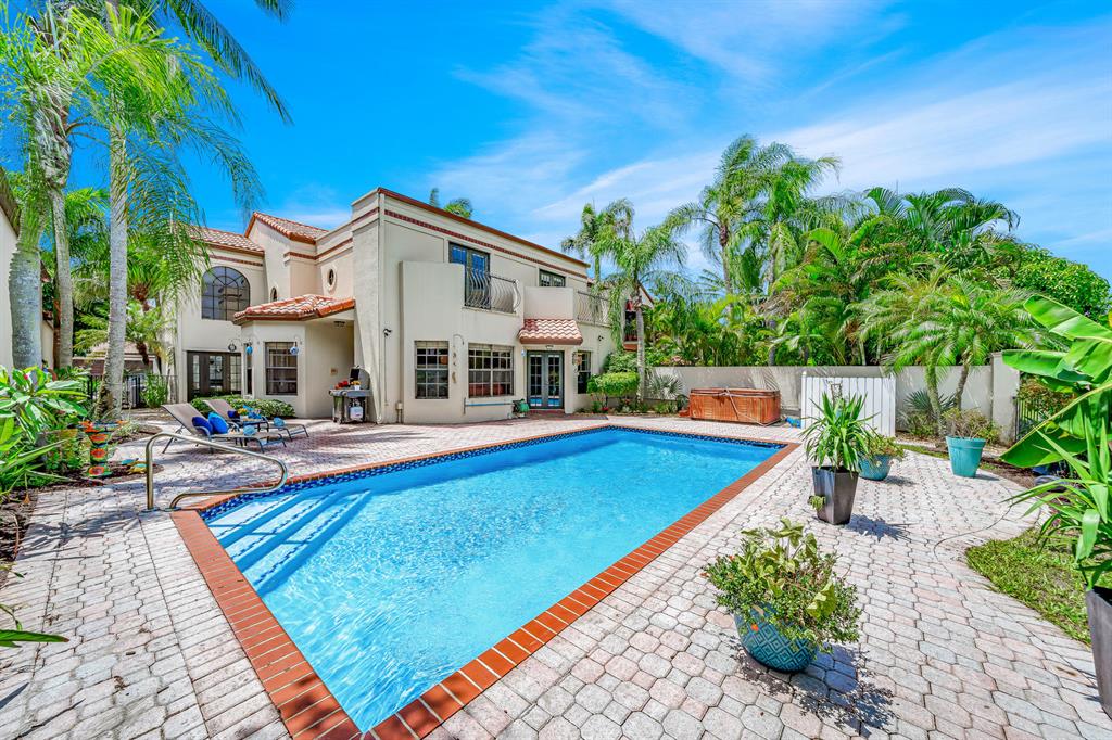 Wow! Spectacular Mediterranean waterfront & pool home features 4 bedrooms, 2.5 baths and 2 car garage. Located in the prestigious community of Valencia at Boca Pointe with tons of landscaping, grassy area and more! Dramatic entrance w/soaring high, volume ceilings. Enjoy the sense of openness, volume, & space. Tile flooring on a diagonal throughout the downstairs living area. New LED lighting throughout. Everything is oversized....Huge living and dining room...family room off kitchen has a sunny eat-in breakfast nook,