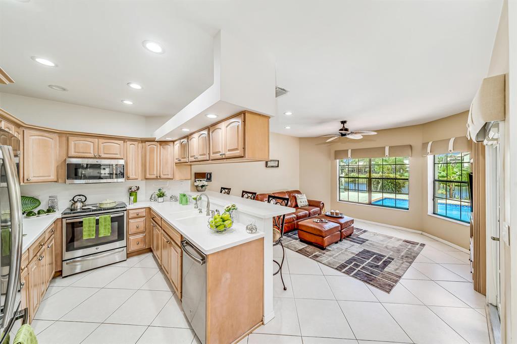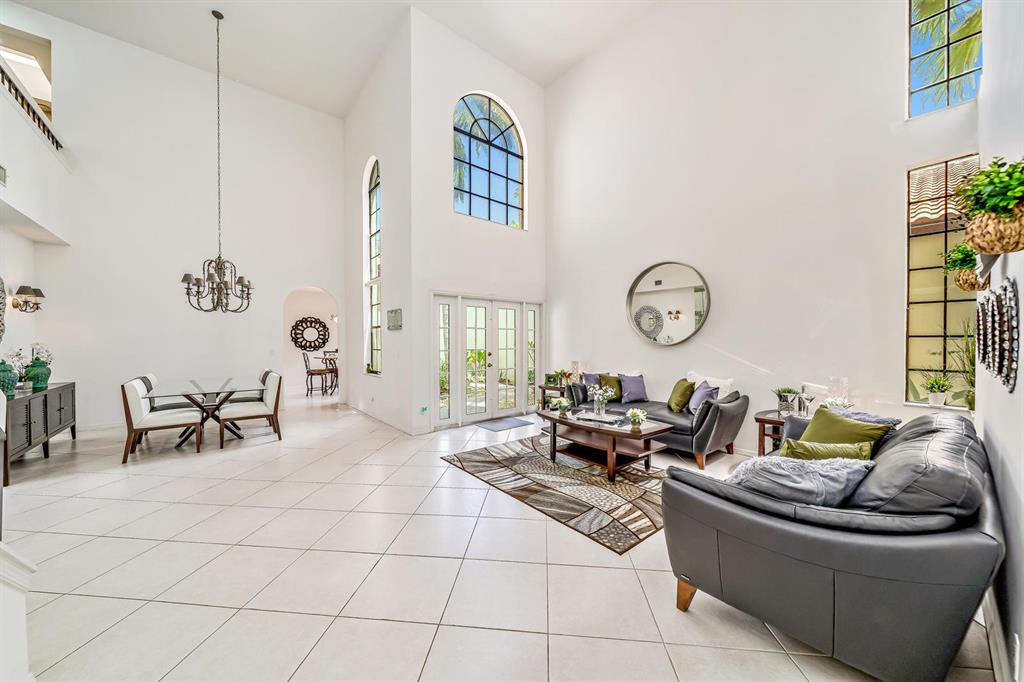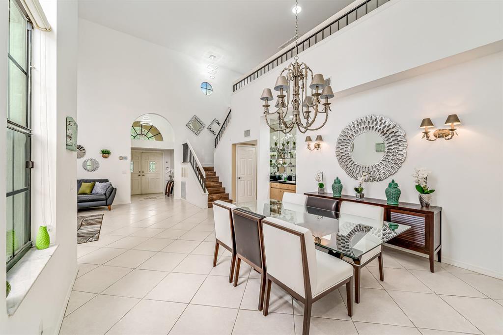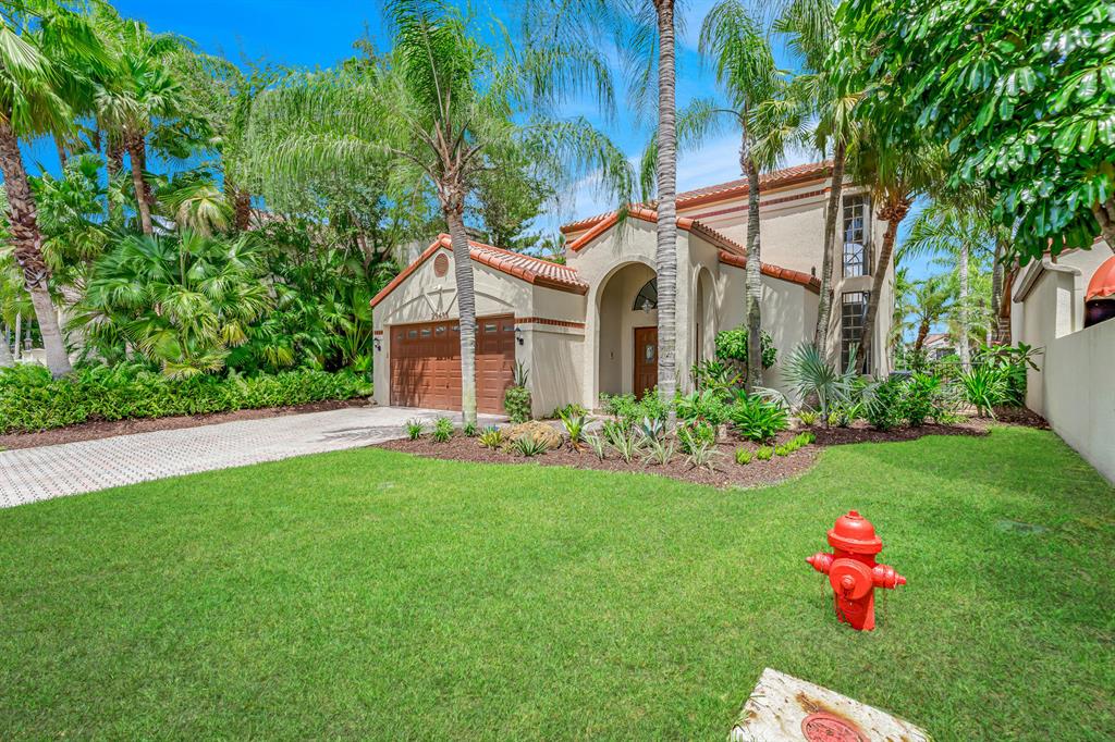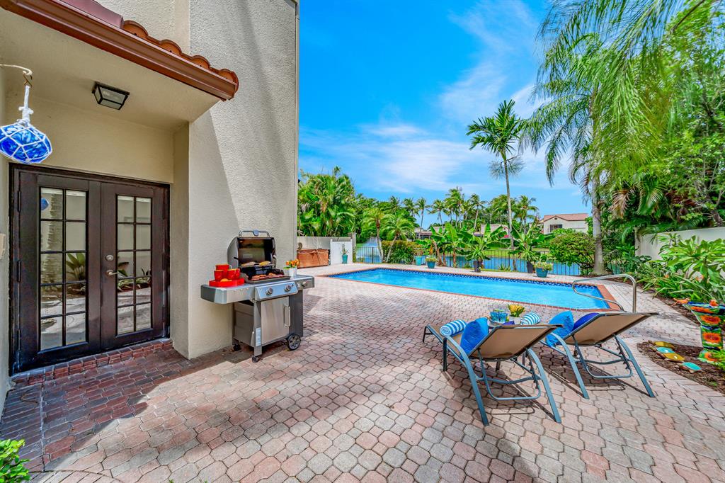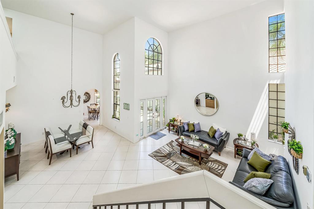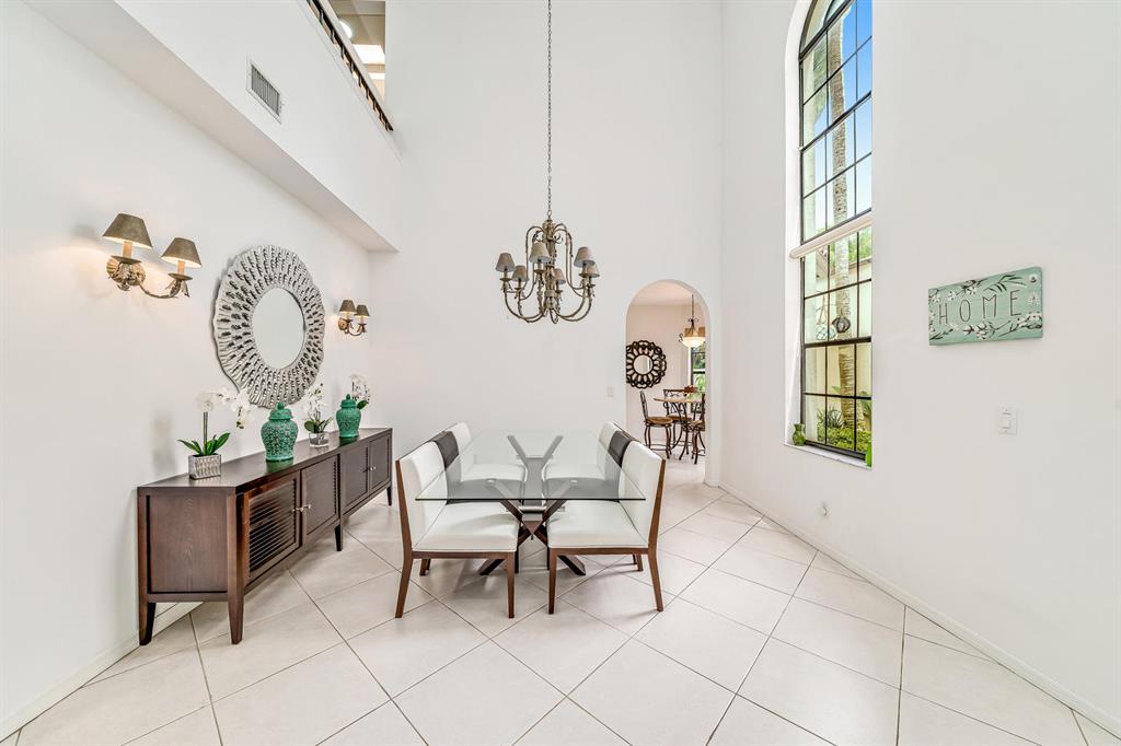 Wow! Spectacular Mediterranean waterfront & pool home features 4 bedrooms, 2.5 baths and 2 car garage. Located in the prestigious community of Valencia at Boca Pointe with tons of landscaping, grassy area and more! Dramatic entrance w/soaring high, volume ceilings. Enjoy the sense of openness, volume, & space. Tile flooring on a diagonal throughout the downstairs living area. New LED lighting throughout. Everything is oversized....Huge living and dining room...family room off kitchen has a sunny eat-in breakfast nook,