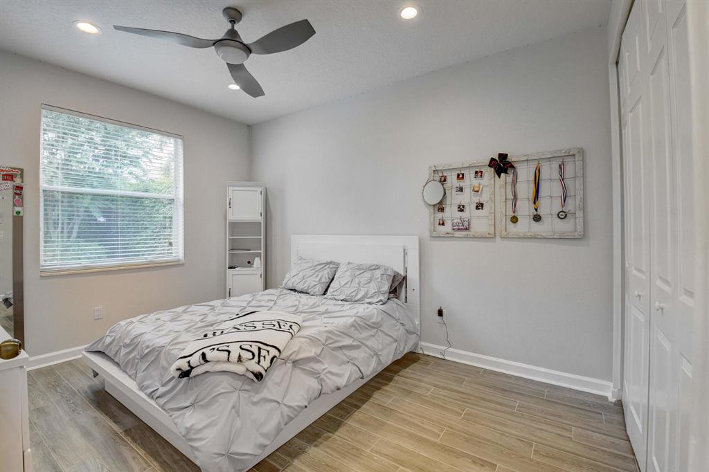 Beautifully updated one-story home with 4 bedrooms, 3 baths, plus an office in the Crystal Pointe section of Boca Falls. Professionally decorated, this home is a must see. Gorgeous backyard with new pool, top of the line hurricane impact front doors, tons of storage, recessed lighting, 3 car garage, 2018 A/C, and much much more. Updated kitchen and bathrooms with quartz countertops, brand new floors in all secondary bedrooms and accordion shutters throughout. This home will not disappoint. Boca Falls is a highly sought after community with two 24 hour manned gates. Newly renovated clubhouse with a beautiful community pool, gym, 6 tennis courts, full size basketball court and a new state of the art playground. Walking distance to A-rated schools.