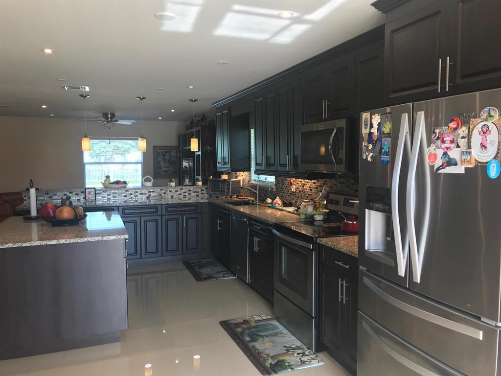 Great Home Centrally located, only Seven Miles from the Beach. This home has no HOA and is Completely Renovated. Large Rear patio with Paver walkways going all around the house. Driveway has rolling gate. kitchen as wood cabinetry with stainless Steele appliances.