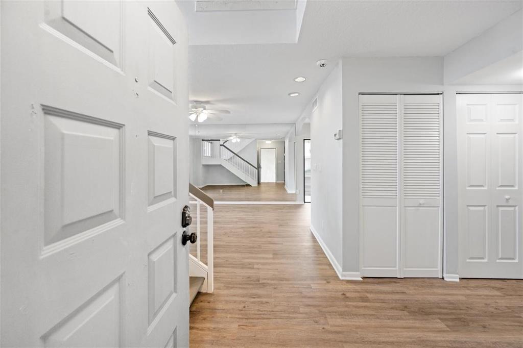 There is much to love about this secluded, move-in ready CBS home. Welcome home through the large screened-in patio, one of three outdoor living spaces, each with a westward exposure and water views from every room, which serve as a venue for nightly sunsets and a parade of birds on their way to their sanctuary. This well-appointed 3/2.5 townhome, the largest model in the community, features an over-sized living room, which can comfortably showcase a 90-inch TV screen. Dine inside, in your eat-in kitchen or outside, on the spacious bonus patio off the kitchen. There are two separate under-the-stairs spaces; one with practical deep storage, and the other with endless possibilities (search ''under stairs nook'' on Pinterest for inspiration).