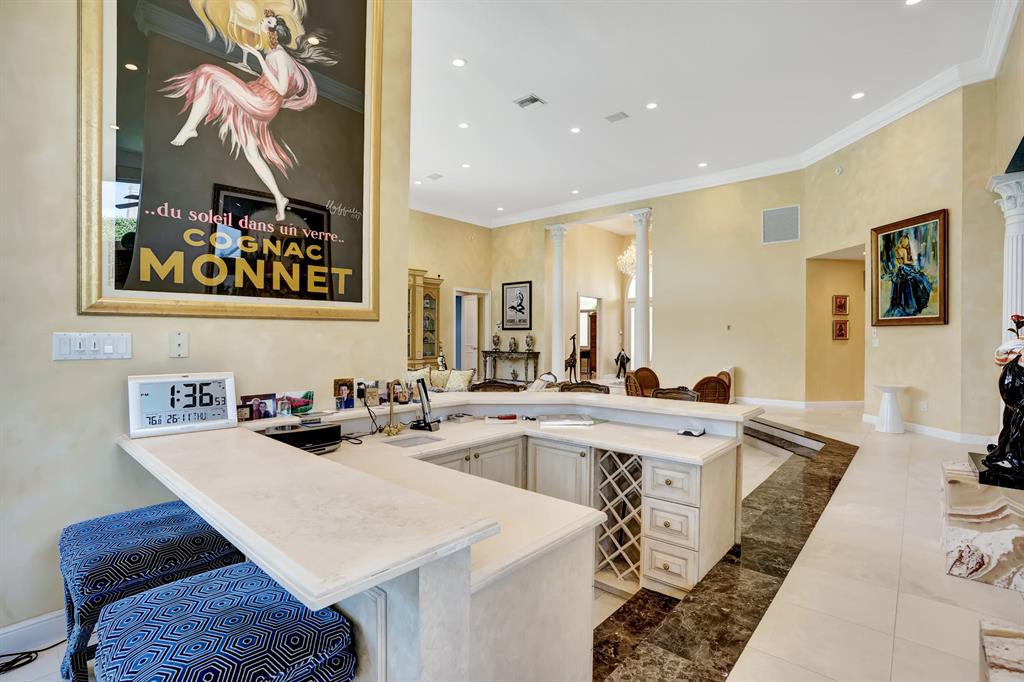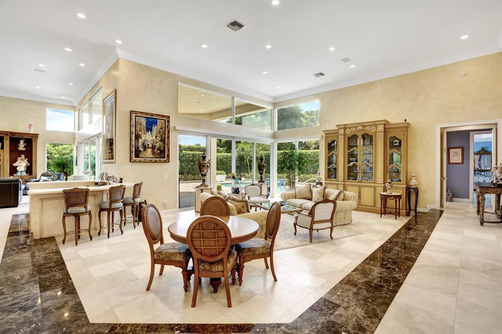 This luxury residence offers fine living in a perfect location. Over 4,100 square feet with a well-designed floor plan, 4 spacious bedrooms and 4 and 1 half bathrooms which complete the living areas. The estate is surrounded by lush landscaping upon entry. The main areas are upgraded with a Palm Beach-feel, and feature a large sunken living room for entertainment purposes, a true chef's kitchen with wood and granite accents, 42'' custom cabinetry, Viking stove and double ovens and center island, 2.5 car garage, natural light, volume ceiling, and master suite with dual sinks, marble and wood flooring, NEW roof and hurricane impact glass. The lanai features a wonderful pool and large covered sitting area. Mandatory golf equity purchase $90,000.00