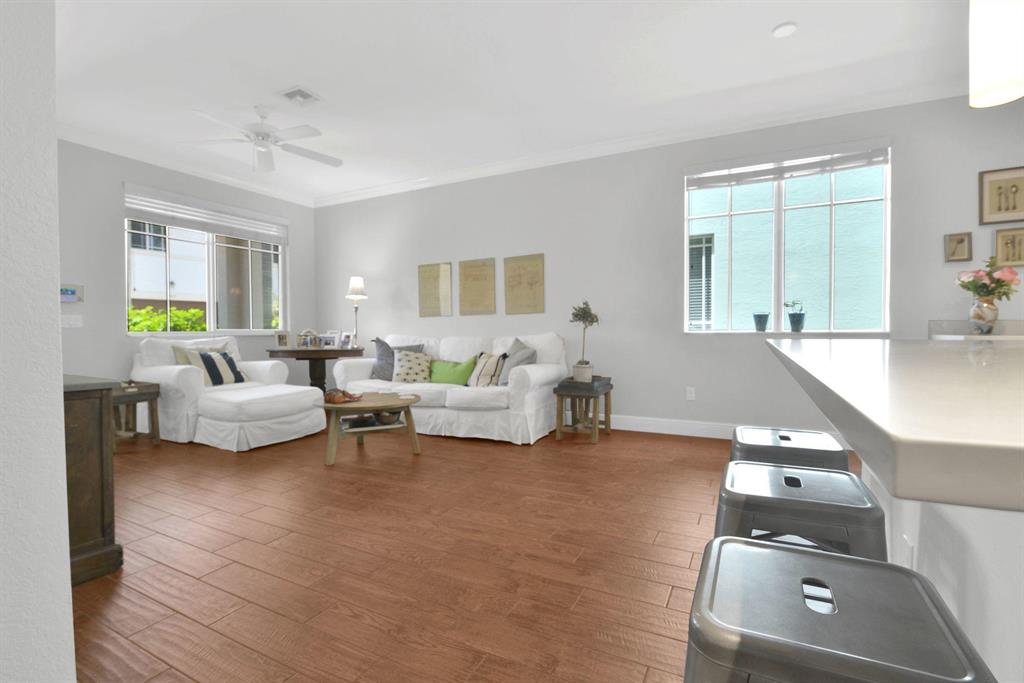 Price Adjusted! RARELY AVAILABLE DOWNTOWN EAST BOCA LOCATION. Spacious open layout with high ceilings,crown mouldings, all impact doors and windows, gourmet kitchen with double oven, GAS STOVE expanded island featuring countertop and backsplash direct imported from Italy and made from crushed shells, ceramic wood floors throughout bottom floor, interchangeable very large living and dining rooms.Brand New A/C system. Large great room perfect for families, large master bedroom with tray ceilings. Master bath with jacuzzi tub and double vanities in the same imported from Italy countertops as in the kitchen and large walk in shower and separate toilet room. All large guest bedrooms have their own large walk-in closet. Private front porch with pr