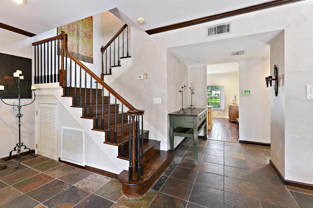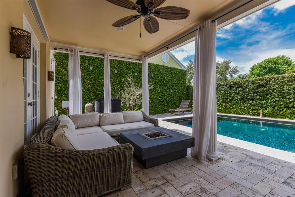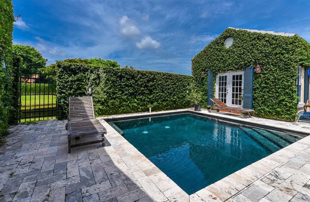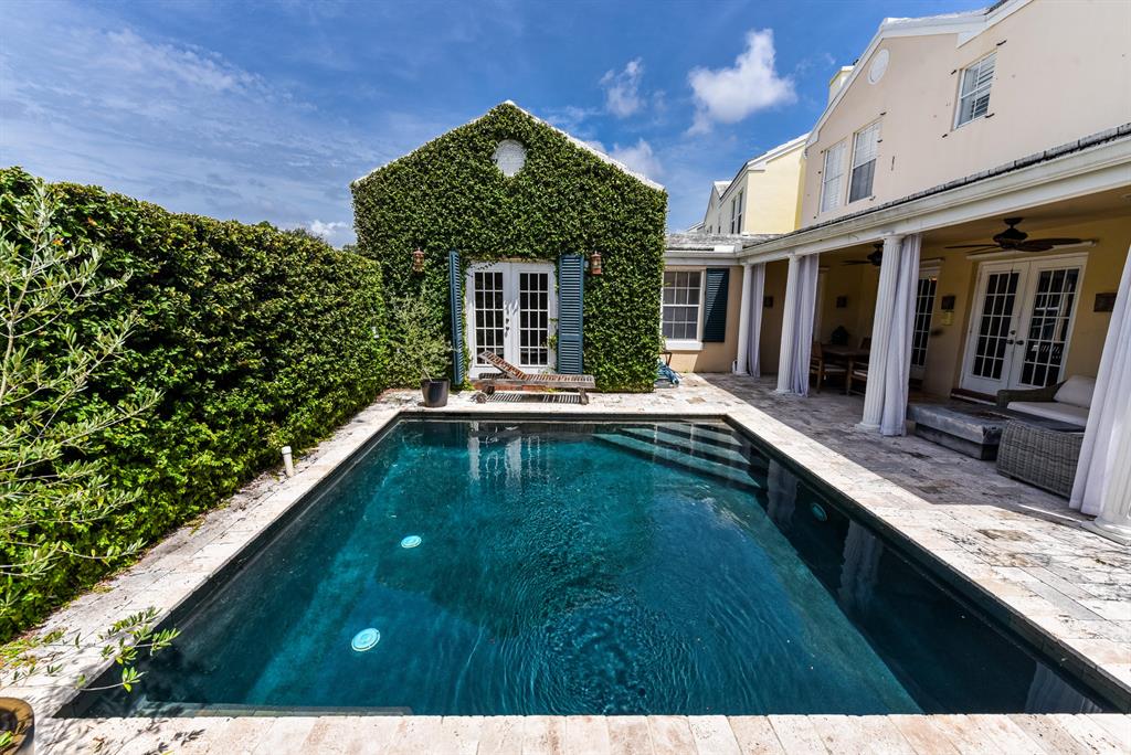 Rarely Available! This charming townhome is located in a premier location in the award winning community of Charleston Place. Across from the large park which is surrounded by arched bougainvilla walkways. Live oak trees form a canopy over the streets providing comfort from the heat. New roof, private pool, renovated kitchen, French doors, storm protection, chair rails and fireplace are only some of the features. A private oasis downstairs is a 4th bedroom or family room with closet and full bath.