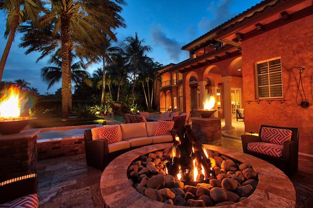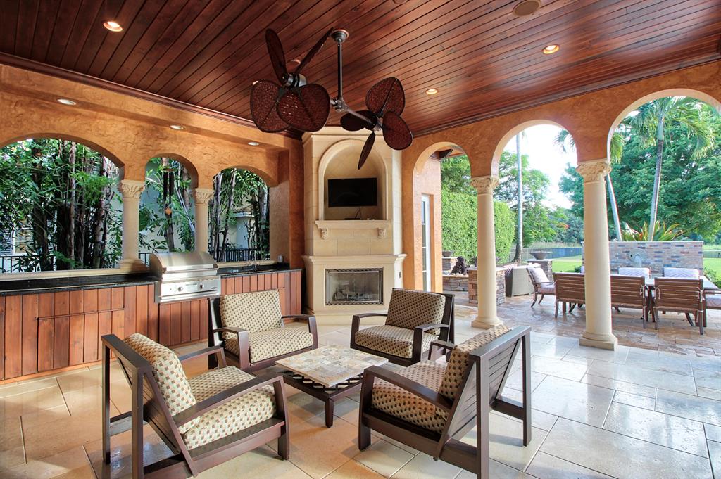 ''Island Living in Boca Raton''. Le Rivage is an exclusive gated enclave of just 18 residences on minimum one-half acre lots surrounded by water and lush landscaping. Professional designer spared no expense in this luxurious estate home. Natural gas throughout, full house generator, impact glass, magnificent fireplace, elevator, sunken wet bar, extensive BBQ area and so much more. Attention to detail is evident inside and out with accents of stone, marble, cypress wood and wrought iron. Entertainment is abundant whether practicing your golf swing on your own range or perfecting your putts on the green. Grab a fabulous bottle of wine from your wine closet and enjoy the tranquility of the stone waterfall while sitting around the decorative fire pit enjoying the sunset. Endless possibilities!