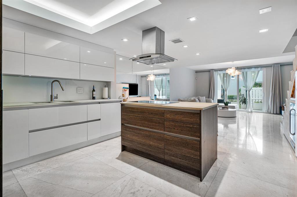 STUNNING and RARE Find in East Boca! This 3 bedroom/2.5 bath townhome has been beautifully custom designed featuring the most gorgeous OPEN kitchen with European white cabinetry electronically operated, Miele appliances, steam oven and induction cooktop with stainless steel range hood. Plenty of extra cabinetry in kitchen along with built-in wine fridge. Marble floors throughout downstairs and Marble staircase with glass railing. Brand new outdoor finished deck perfect for relaxing and entertaining conveniently located near pool. Oak wood floors upstairs along with all 3 bedrooms. Bathrooms have been renovated with Italian porcelain tile and Graff faucets. Kohler digital ''DTV'' shower system and large jacuzzi tub in master. 1 car garage with gladiator floor, impact glass throughout. Roof