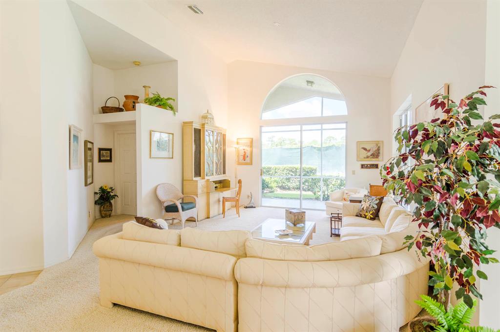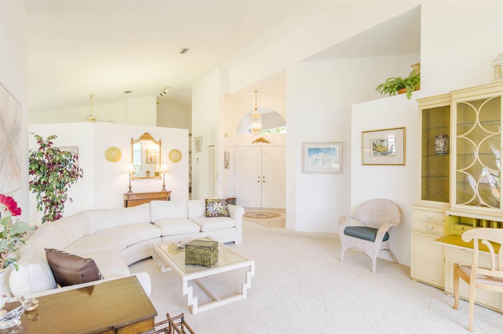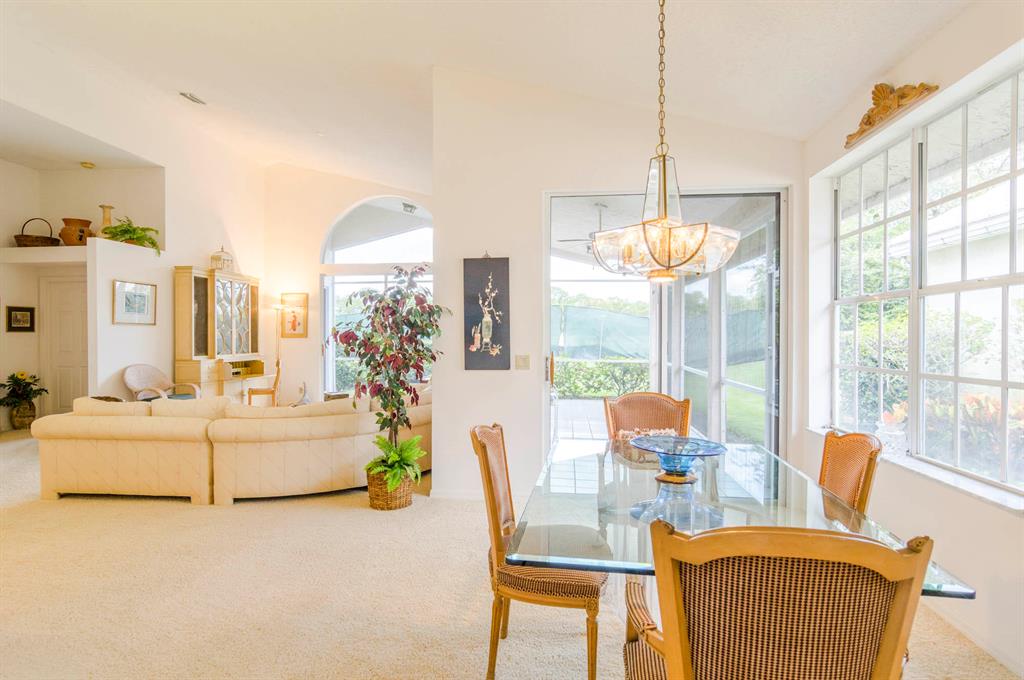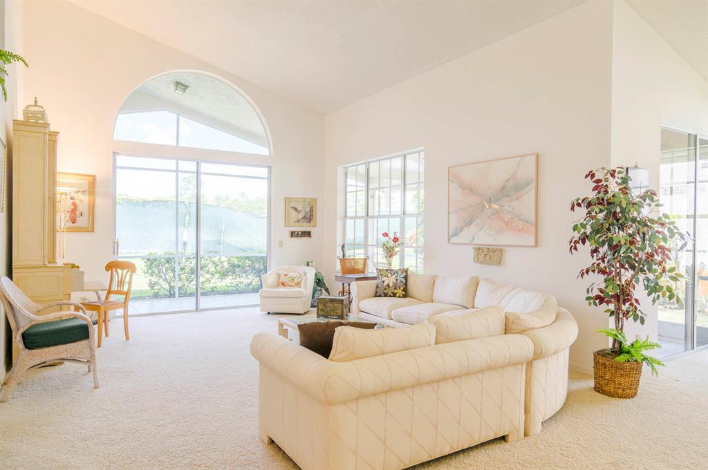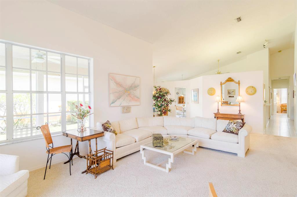 Fabulous opportunity to customize this original owner home. Popular layout with large living room with cathedral ceiling and open to dining room, both with sliders out to the L shaped lanai. Spacious eat-in kitchen with white Formica cabinets and counter that is open to the den area that could easily be a 3rd bedroom as it has a closet and window. Master has fabulous high ceiling, walk in closet and a big master bath with dual vanity, tub and shower. This home is walking distance to the new lifestyle center scheduled to be completed January of 22. Enjoy 2 golf courses, tennis, pickle ball and so much more! 10 minutes to the airport or the beach!