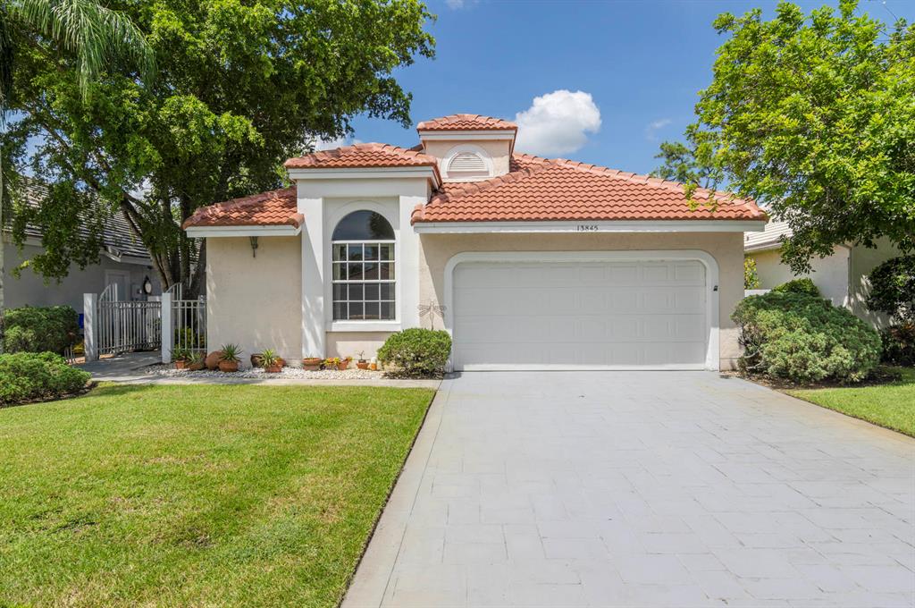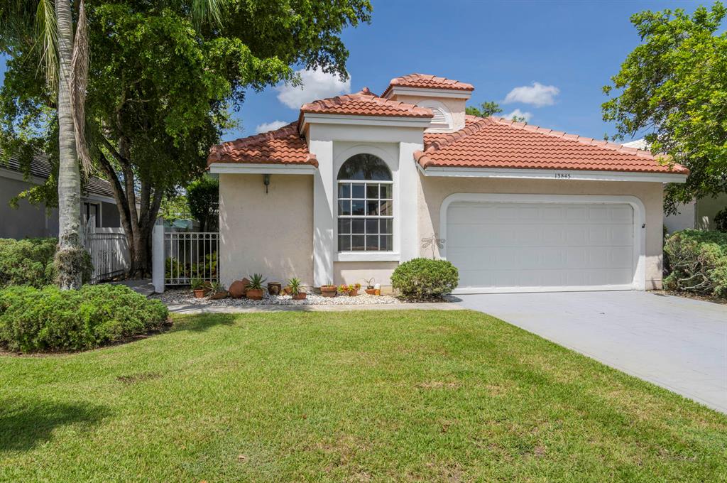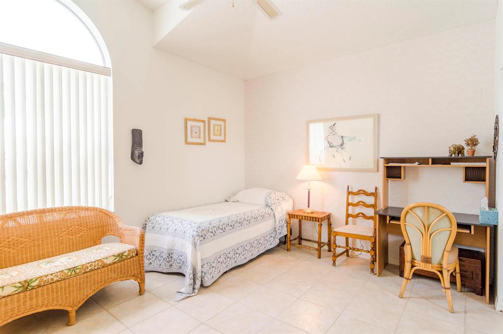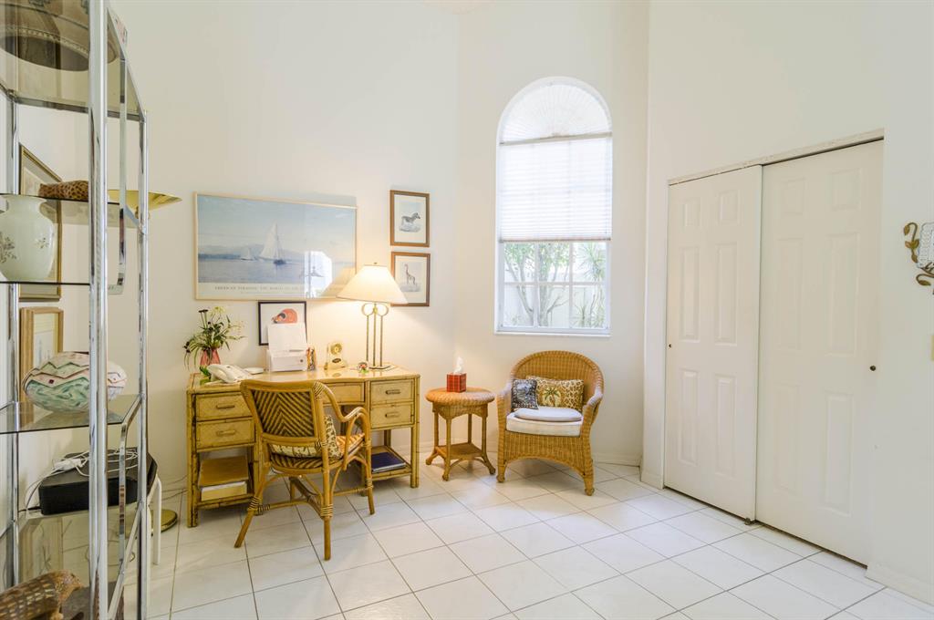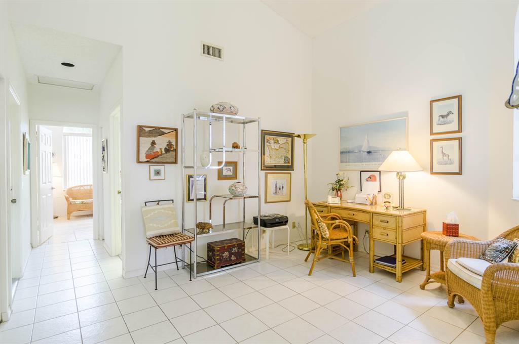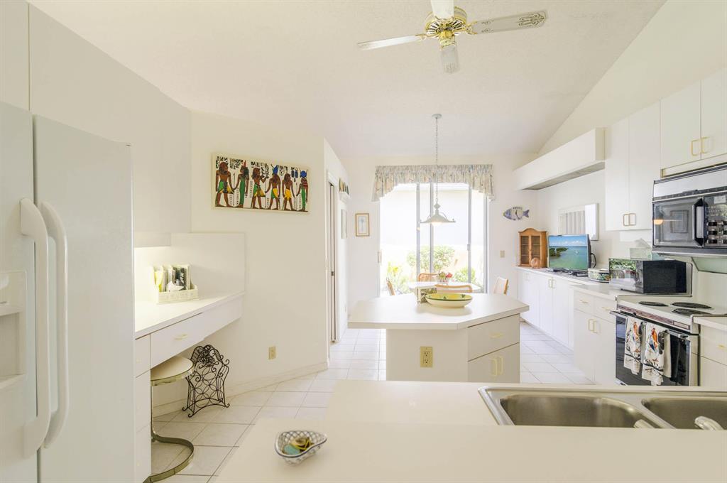 Fabulous opportunity to customize this original owner home. Popular layout with large living room with cathedral ceiling and open to dining room, both with sliders out to the L shaped lanai. Spacious eat-in kitchen with white Formica cabinets and counter that is open to the den area that could easily be a 3rd bedroom as it has a closet and window. Master has fabulous high ceiling, walk in closet and a big master bath with dual vanity, tub and shower. This home is walking distance to the new lifestyle center scheduled to be completed January of 22. Enjoy 2 golf courses, tennis, pickle ball and so much more! 10 minutes to the airport or the beach!