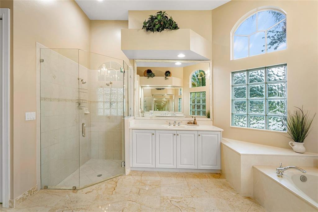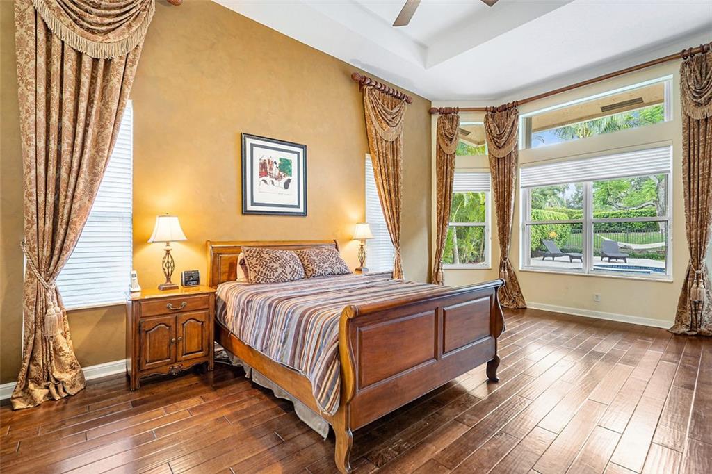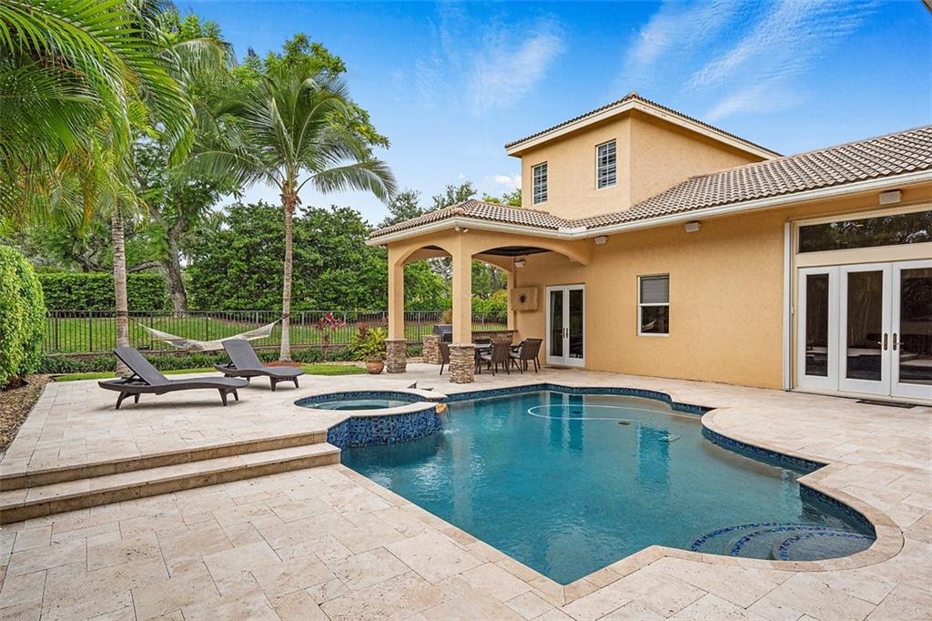 Quite Simply, a Beautiful Home! Double Door Entry Opens to a home flooded w/Natural Light via Expansive Windows & Glass Doors! Spectacular Views of the Idyllic Pool Area & private backyard thruout! A 2 story addition makes a great in-law suite & features a great room w/a stone fireplace, bar, bedroom & bathroom! Suitable for multi generation households. Large Open Kitchen & Family Room Area is perfect for Indoor/Outdoor Living w/a Crisp White Kitchen & Walls of windows & glass doors! Large Master Suite is Luxurious w/a Sun Drenched sitting area & spa Like Bath! Resort style pool & spa area w/a summer kitchen, porch w/wood ceiling, stack stone, marble pavers & tropical landscape. Other Offerings: Wood floors, plantation shutters, crown molding, tankless water heater & some impact windows!