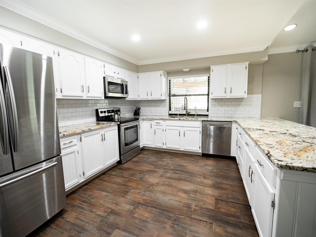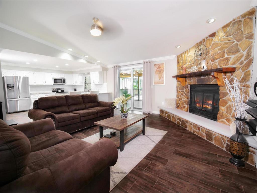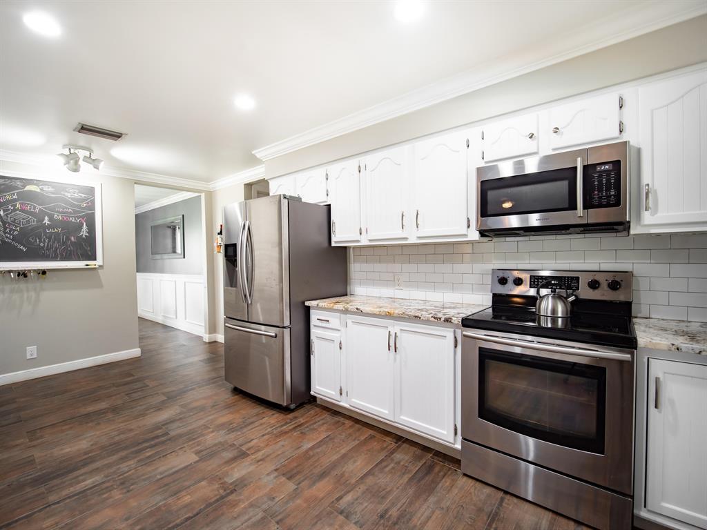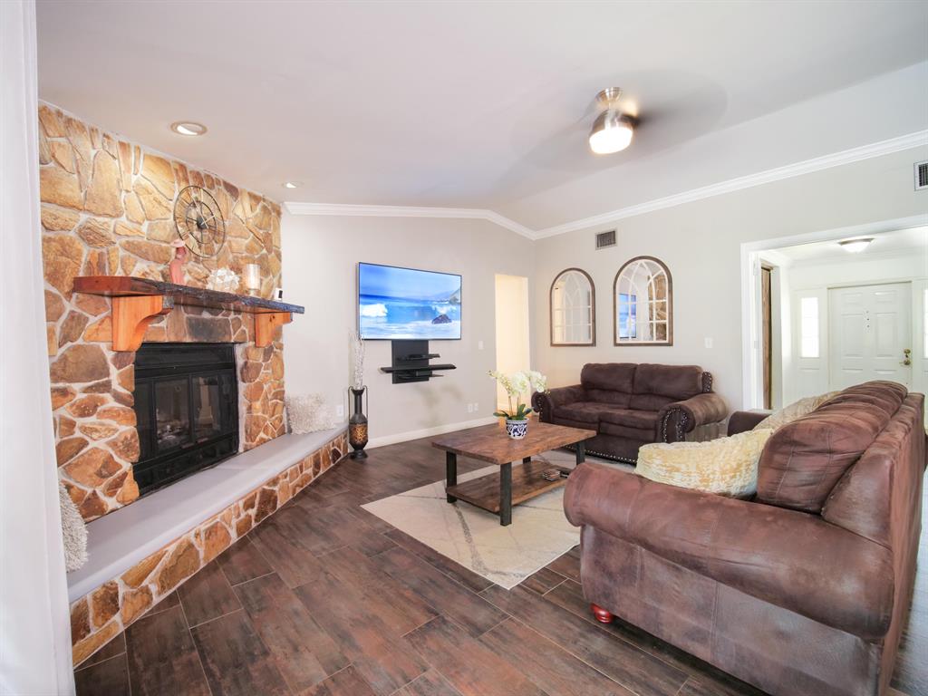 Open concept pool home on a paved road that has been completely renovated throughout. Brand new roof 2018 and flat roof over patio 2019. This home has ceramic wood tile throughout. Kitchen has exotic granite counter tops. Crownmolding in every room with 3 wood barn doors. Real wood burning fireplace with custom vinyl upholstered seating area in front. Every room has a walk in closet. Large indoor laundry room. 3.5 car garage. Self flushing water system with peroxide and reverse osmosis drinking water. Back patio has custom moveable outdoor bar for entertaining with exotic granite countertop. Screened in patio with pool and hot tub. Backyard has a large treehouse and is filled with 100 year old oak trees that provide ample shade. Fruit producing mango and papaya trees. 1.25 acres and NO HOA