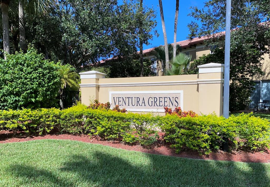 Rare Chance to own this beautiful 3 Bedroom 3 & 1/2 Bathroom Town home in a fantastic 70 home community of Ventura Greens. This Townhome is the largest model in the community with just under 1900Sqft of living space. When entering you will see that the unit has been meticulously maintained by the original owner. On the first floor the home boast an entry level living room with half bath, a large open family room with dining space and an updated kitchen. On the second floor you will enjoy TWO MASTER SUITES with their own private bathrooms and a one guest bedroom, full bathroom & laundry room. Two of the bedrooms have their own balcony's to enjoy. Outside you have a paved patio perfect to BBQ & with a community pool you have everything to enjoy South Florida. 720 Credit score required by HOA
