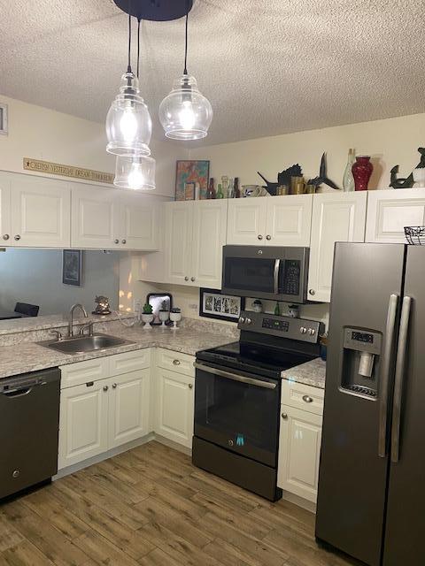 MOVE-IN-READY!!! Spacious 2 bedroom, 2 1/2 bath townhome. Plank tile downstairs, newer GE smudge proof slate appliances, kitchen pantry, custom blinds on all windows, accordion shutters, custom built laundry closet, private screened in patio under roof with an exterior storage closet.Low HOA includes a gated community, insurance, exterior maintenance, clubhouse and pool overlooking the lake. Plenty of guest parking. Close to shopping and beach. Easy access to all major roads.