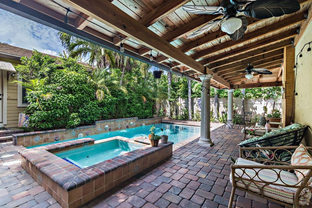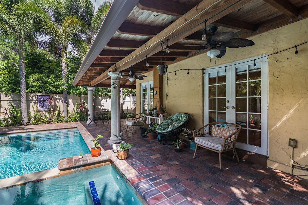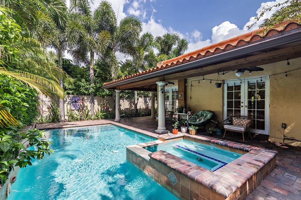 Stylish 1925 Spanish Mission style house plus a cottage and pool in the downtown Flamingo Park neighborhood. The main house offers 2 bedrooms and 1 renovated bathroom, a formal dining room, impact windows, original Dade County wood floors, Pecky Cypress ceiling in the Florida room, arched entry's and a fireplace. The kitchen leads to the covered patio and 24 x 12 saltwater/heated pool and spa. The detached 1 bedroom 422 sf quest cottage offers a renovated bathroom and kitchen, washer/dryer, a living room and a private covered patio. The garage adjacent to the guest house offers storage/options. Convenient to Palm Beach, downtown attractions and minutes to great local restaurants, the airport, museums and the beach.