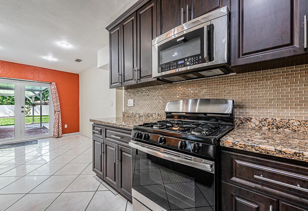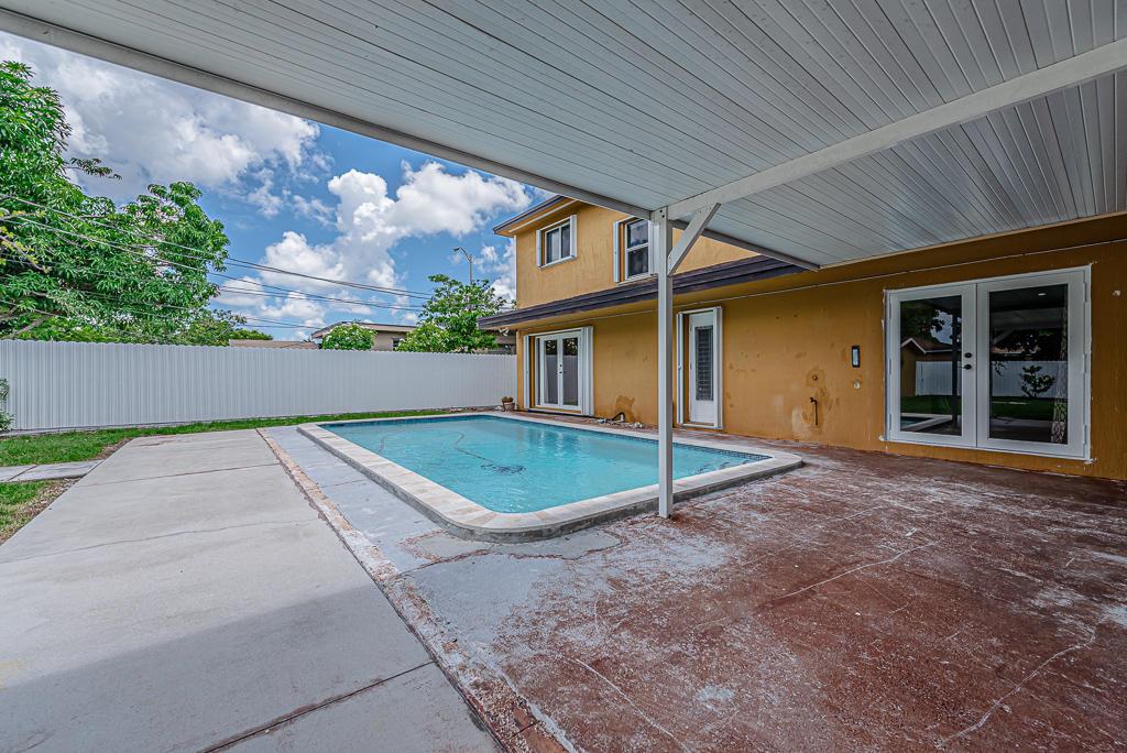 This beautiful single-family 2-story home has all you for great family living. It's located close to schools and major highways. The shopping mall and grocery stores are within proximity. Large 17ftx14ft remodeled kitchen with stainless steel appliances. The kitchen has 66 doors of storage and 100sq ft of granite countertops x 5ft. The master bath upstairs has a shower, a large whirlpool tub with a wall-mounted tv, and a closet dressed with gold travertine stone throughout. The downstairs bath's shower and the closet have been upgraded and there is an exterior door that accesses the pool area. The remodeled pool has a new pump and self chlorinator. Large deck and covered 25ft x 35ft patio. The front door and double patio door are impact resistant.