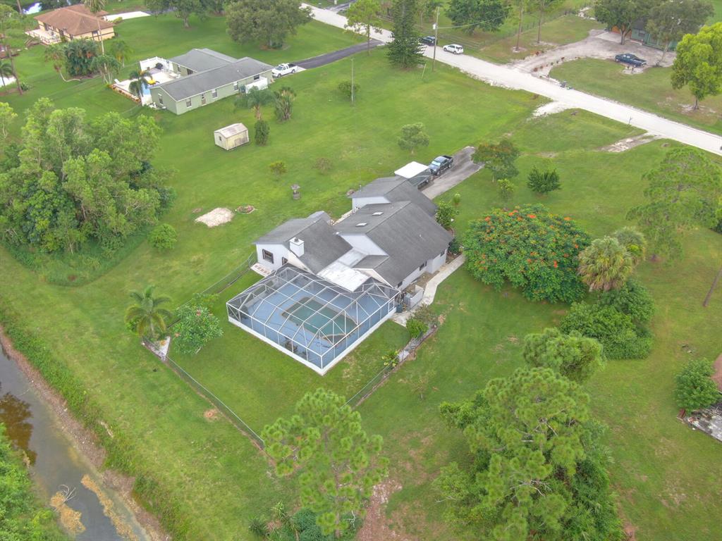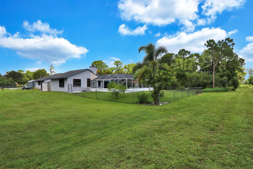 HURRY!! Gorgeous 3BED/ 2BA POOL home on 1.25 acres of NO HOA freedom in desirable West Palm Beach Acreage. Boasting nearly 2000 sq ft under air. This spacious, split floor plan greets you with soaring vaulted ceilings, impact glass skylights, new 20inch tile flooring and a wood burning fireplace. Large master has private sitting area great for a home office. Large walk in closets. Beat the heat w/ TWO newer A/C units!! Hurricane ready!! Convenient ACCORDION shutters!! In ground pool screened in with enormous patio for outdoor entertaining. Fenced backyard great for kids or pets. Fish in the canal! Beautifully landscaped with trees, orchids & fruit trees. Bring the TOYS!! Plenty of room for a RV,Camper,Boat Etc. Horse friendly. Trails nearby. THIS WILL NOT LAST!! SCHEDULE TODAY!!