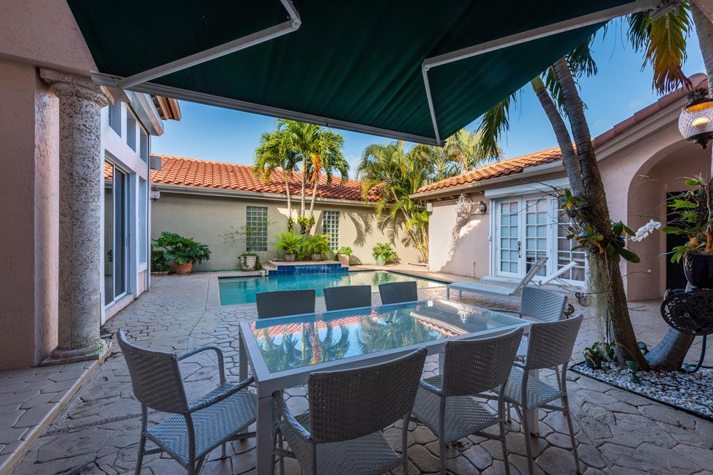 Fantastic Boca Court yard Pool home. In Santa Barbara Community, a 4 Bedrooms, 3-1/2 Baths, Marble floors and Stairs, granite countered island kitchen, spacious master bedroom and guest room off the court yard pool. This is a true court yard pool home. Close to clubhouse, heated pool, tennis courts exercise facility and more. Close to Boca Town Center Mall, restaurants, universities and great schools.