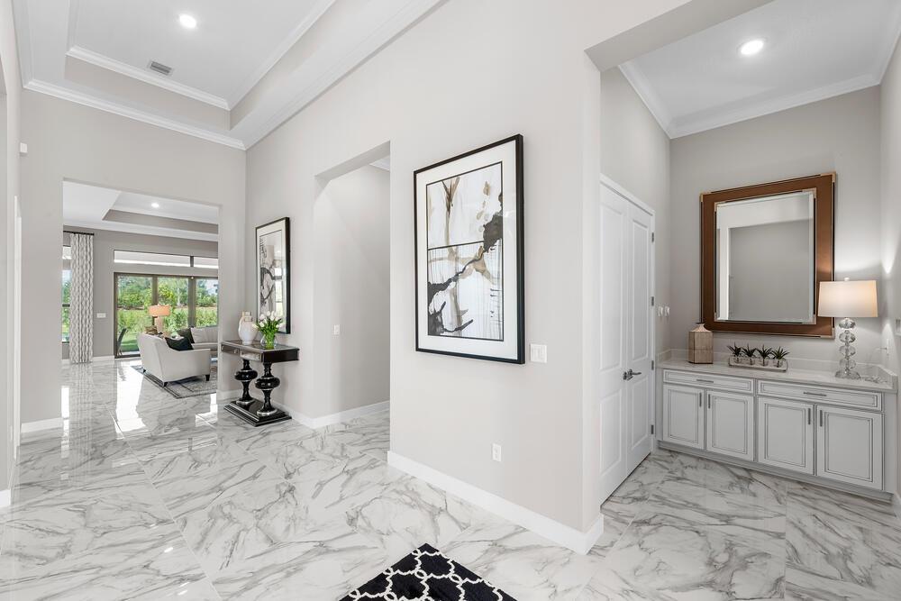 The Islamorada in Falls at Parkland is a 3374-3620 SqFt home w/ 3-car garage. Double door opens to an estate-size foyer w/ 15'' ceiling & view of grand formal dining. Open great room, kitchen and informal dining w/ 12'' ceiling overlook expansive lanai. Chef's kitchen has granite, breakfast bar and walk-in pantry. Available expansion offers morning room, 2nd island, butler's pantry and more. Glamorous movie star closet and opulent bath w/ granite and 12'' frameless glass walk-in shower. Amazing large impact windows. Private entrance from exterior vestibule to guest suite w/ bath, WIC and optional wet bar. Powder room for guests, available access from laundry to owner's closet. Spectacular plan! *Photos of model home. Lot premium cost not reflected.The Falls at Parkland is a new luxurio
