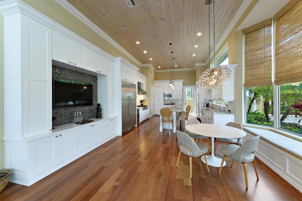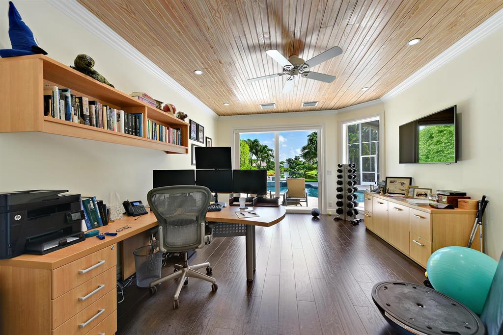 This exceptionally renovated one story lake front home offers sensational views from every major room in the house. A tropically landscaped circular driveway leads to a gated courtyard entry, the main home, a two and one half car garage and separate office or guesthouse with an en suite bath and kitchenette. Expansive openness and tasteful decor is evident from the entry foyer, with soaring two story ceilings, floor to ceiling glass, extraordinary rich Brazilian hardwood floors, custom coffered ceilings and large expansive impact glass windows. Main house has a full master bedroom suite, and two additional bedrooms. An open pool with spa, a marble paver patio with open BBQ, and a screen enclosed two story covered patio all overlook serene lake vistas. See More..