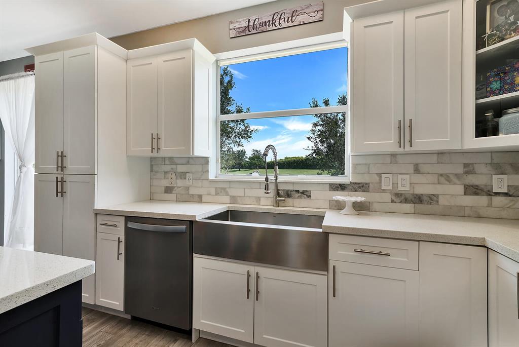 Beautiful 4 bedroom 2.5 bath home in the resort style community of PortoSol. Located on a premium over-sized lot. Completely remodeled, stunning kitchen with all new cabinets featuring soft close doors & drawers, deep pull out drawers in pantry, quartz counter tops, all new appliances and large island with additional storage. First floor features new wood plank tile flooring throughout the formal dining and living areas. Upstairs features 4 spacious bedrooms with a master suite that has a large walk in closet. Newer laminate floors upstairs and upgraded stair railing. Awesome private back yard with no rear neighbors with an extended paver patio that is great for entertaining. Plenty of room to add a pool. Accordion shutters for the 2nd floor windows and panel shutters for the first floor.