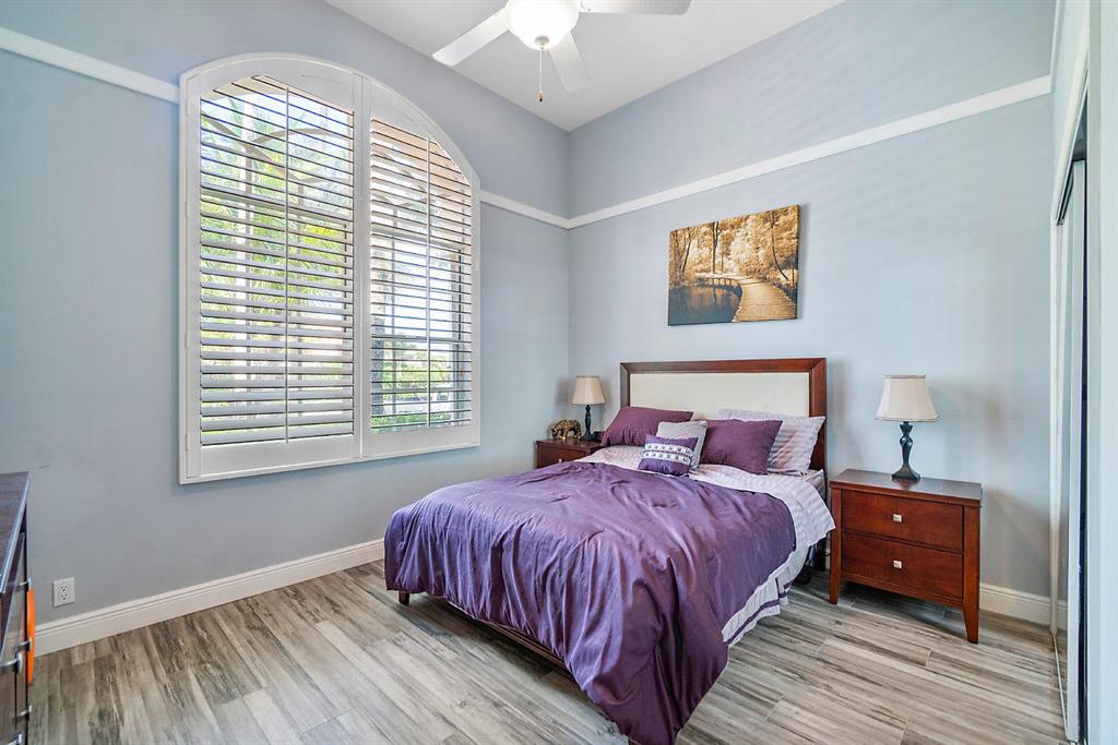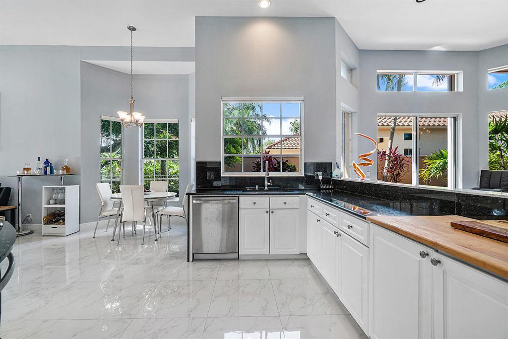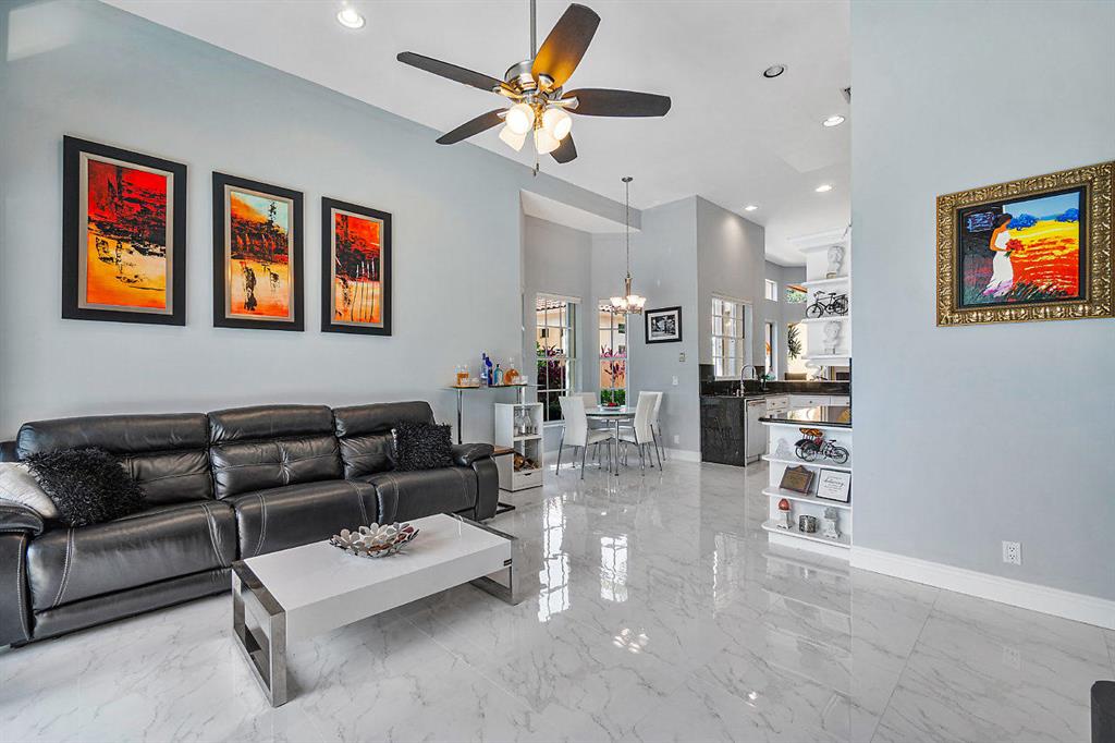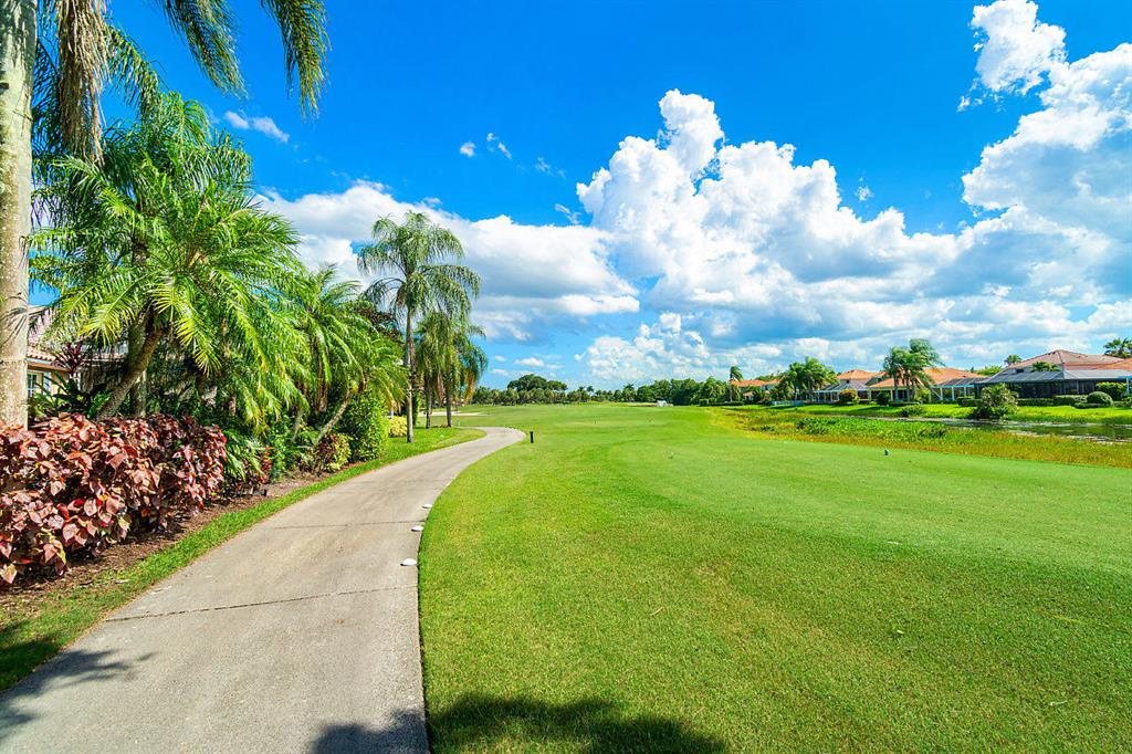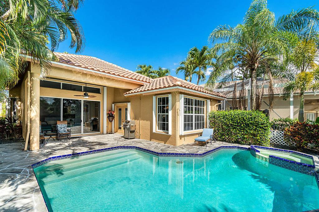 Gorgeous waterfront golf course bungalow with charming courtyard, pool and landscaping. Over 125k in renovations. One of a kind open concept with 15 ft. scraped ceilings. Beautiful 24 x 24 mud set Carrera marble and wood style porcelain tiles throughout. Brand NEW ROOF, renovated master bathroom, new AC unit, new fridge, and granite counter tops. Privacy blinds and California shutters and much more. accordion shutters through out, Deep lot with long driveway adds to this homes appeal. HOA repainting entire exterior of home and trim in August. Select your vibrant new colors now! You simply will not find a better home for under 300K in a 5-star country club anywhere.