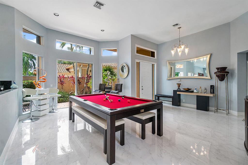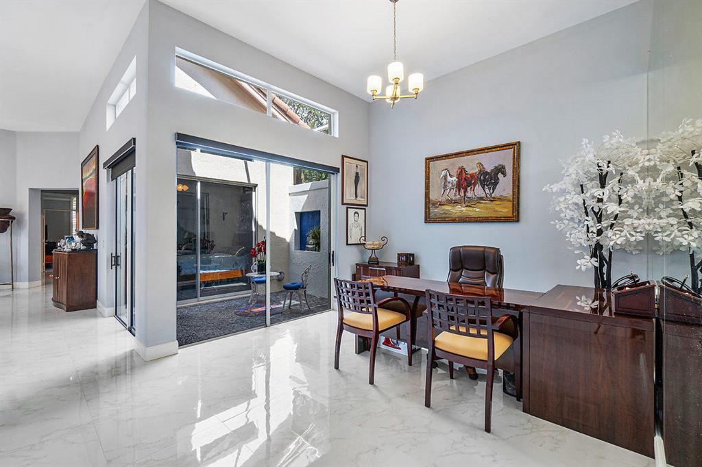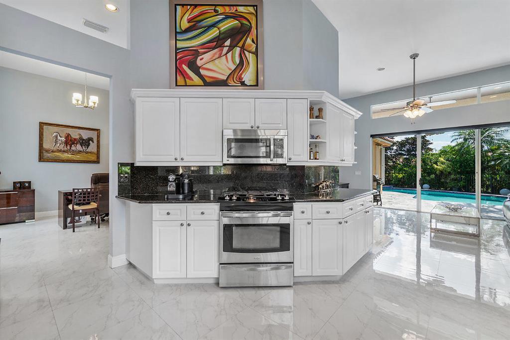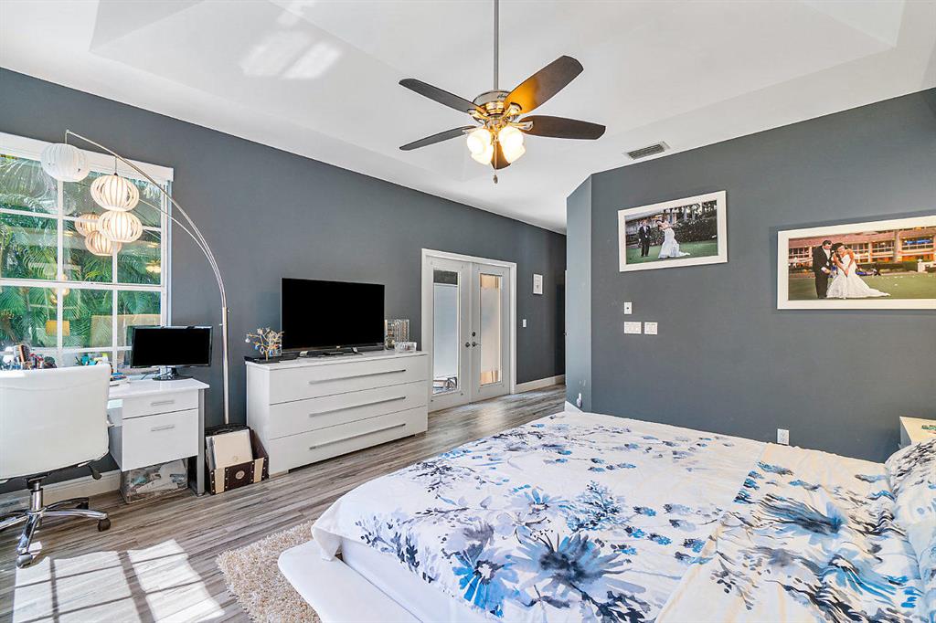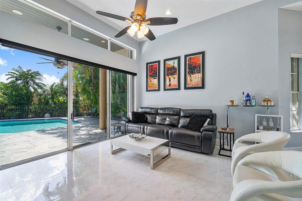 Gorgeous waterfront golf course bungalow with charming courtyard, pool and landscaping. Over 125k in renovations. One of a kind open concept with 15 ft. scraped ceilings. Beautiful 24 x 24 mud set Carrera marble and wood style porcelain tiles throughout. Brand NEW ROOF, renovated master bathroom, new AC unit, new fridge, and granite counter tops. Privacy blinds and California shutters and much more. accordion shutters through out, Deep lot with long driveway adds to this homes appeal. HOA repainting entire exterior of home and trim in August. Select your vibrant new colors now! You simply will not find a better home for under 300K in a 5-star country club anywhere.