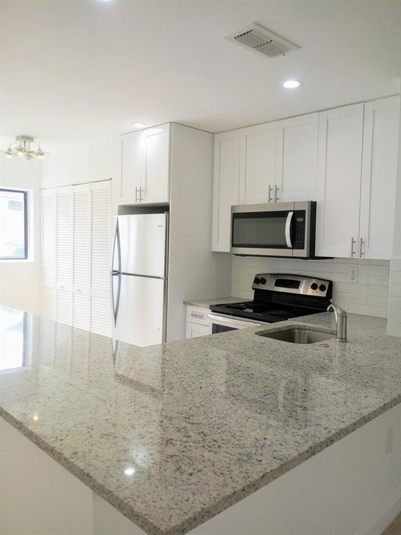 Updated 2 Bedroom, 2 1/2 Bath townhouse in the Palms of Pembroke. Open concept includes a new white shaker kitchen, granite counters, tile backsplash & stainless steel appliances. Recessed lighting. Updated bathrooms. New central AC. Tile floors on the first level. New carpet on stairs & second level. Washer & Dryer. Private fenced patio.