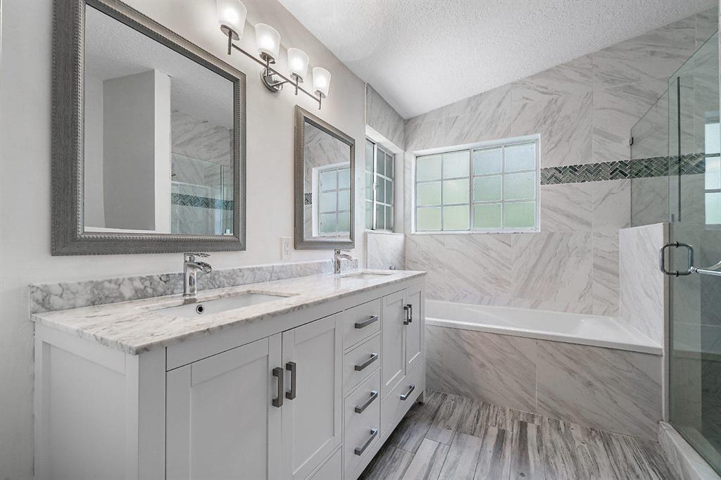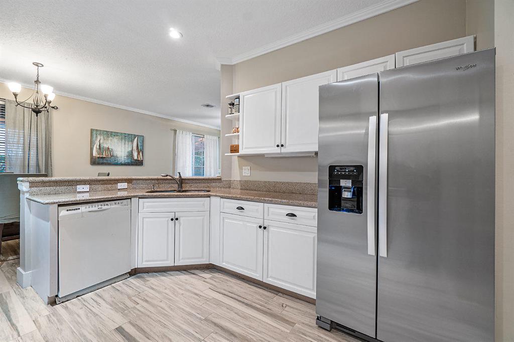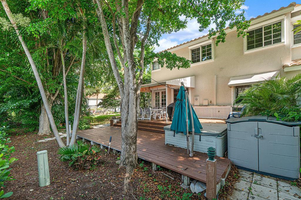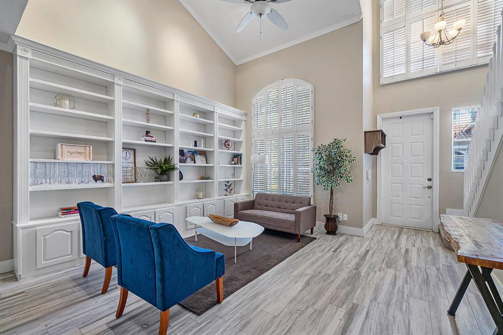 This 3/2.1 townhome has it all! This oversized, corner townhome with 1,955 sq ft feels more like a single family home than anything. You first walk in and are immediately drawn to the height of the ceilings. The home boast beautiful, wood-plank, porcelain tile throughout the open concept home. You have 3 large bedrooms upstairs along with a fully renovated master bathroom and a washer/dryer. Downstairs, you have your kitchen, living and family room with a lovely built in for all your books and pictures to display. The back has a large covered wood patio with lush landscaping, and being the corner townhome it's as if the common area to the side is part of your backyard.