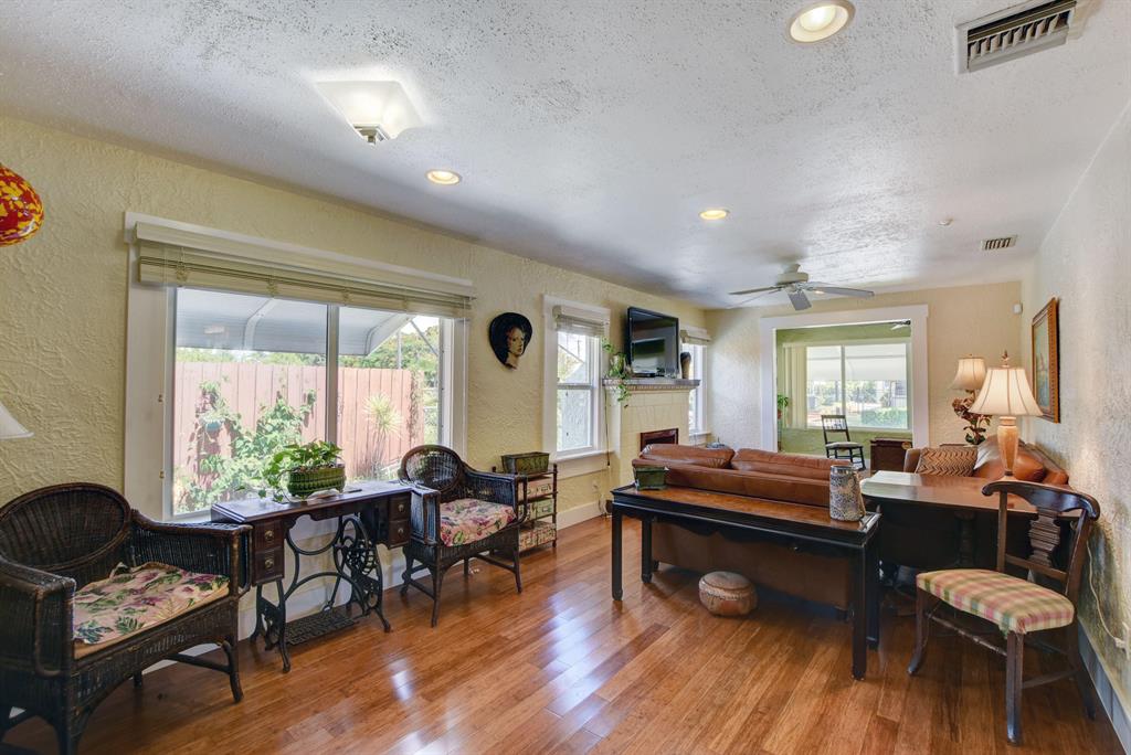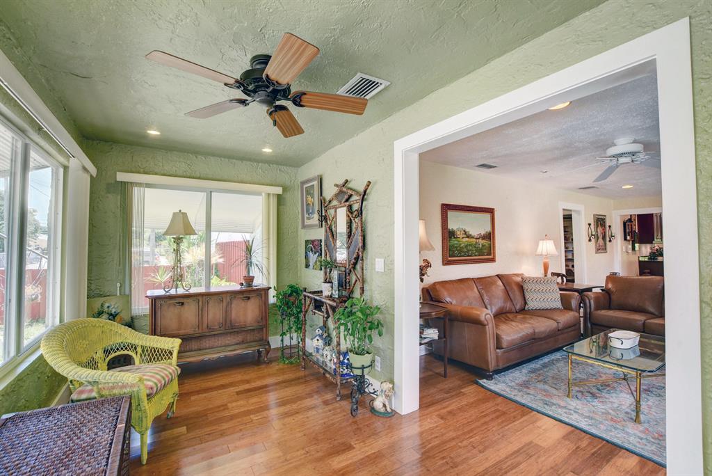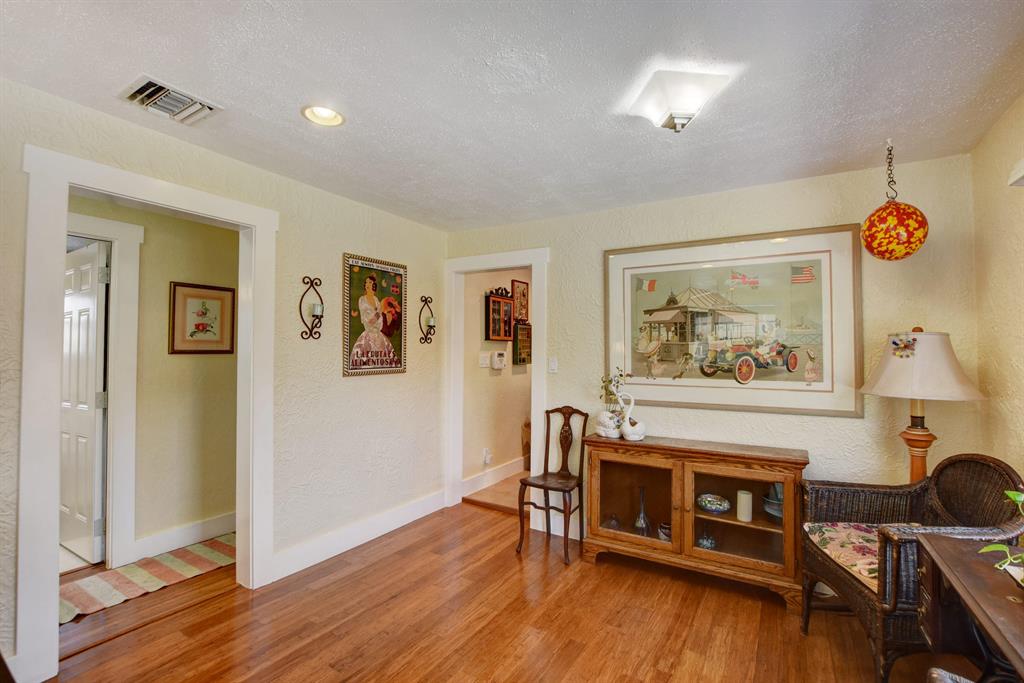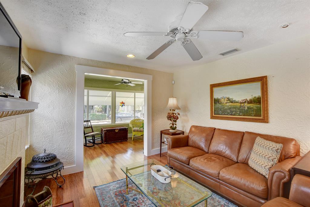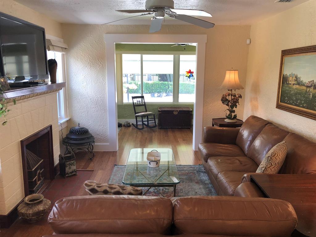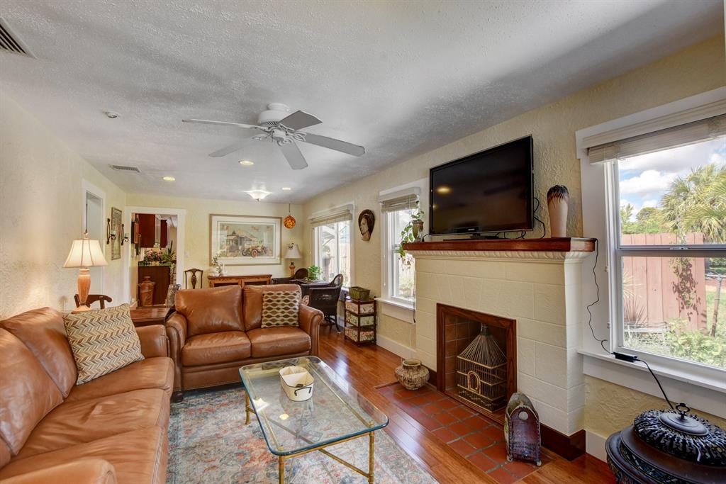 LOVELY 3 BED 1 BATH very well-maintained and updated Spanish Revival home. Features hurricane impact windows, solid carbonized 5/8'' bamboo wood floors, porcelain tile in kitchen, updated bathroom and beautiful working fireplace. Huge updated eat-in kitchen with cherry wood cabinets, slide out drawers and silestone counter tops. Separate dining room. Exterior stucco walls, low pitched roof & eaves with no overhang. New Roof in 2006. New 17 seer HVAC in Jan 2013. Upgraded r-30 insulation and 6 panel metal insulated interior doors. UV protected exterior paint and solar flex paint on roof. Security lighting. Complete sprinkler system. Oversized driveway with 1.5 car garage and a spacious fenced yard.