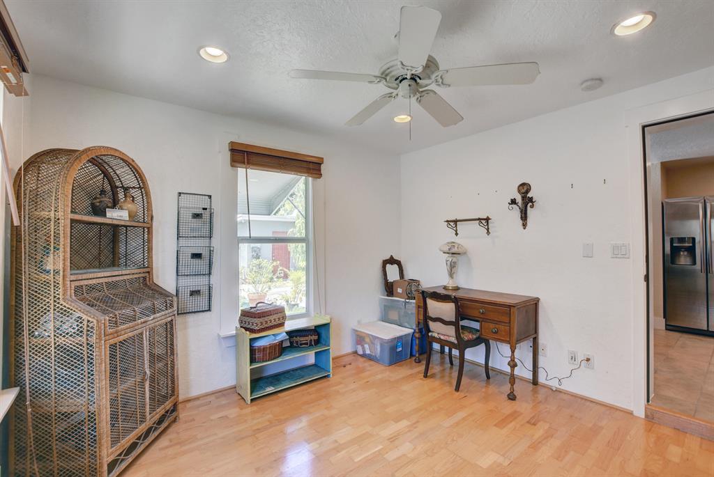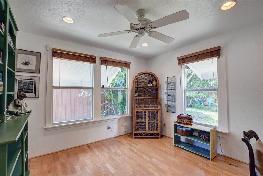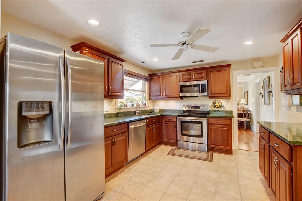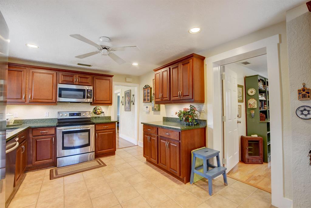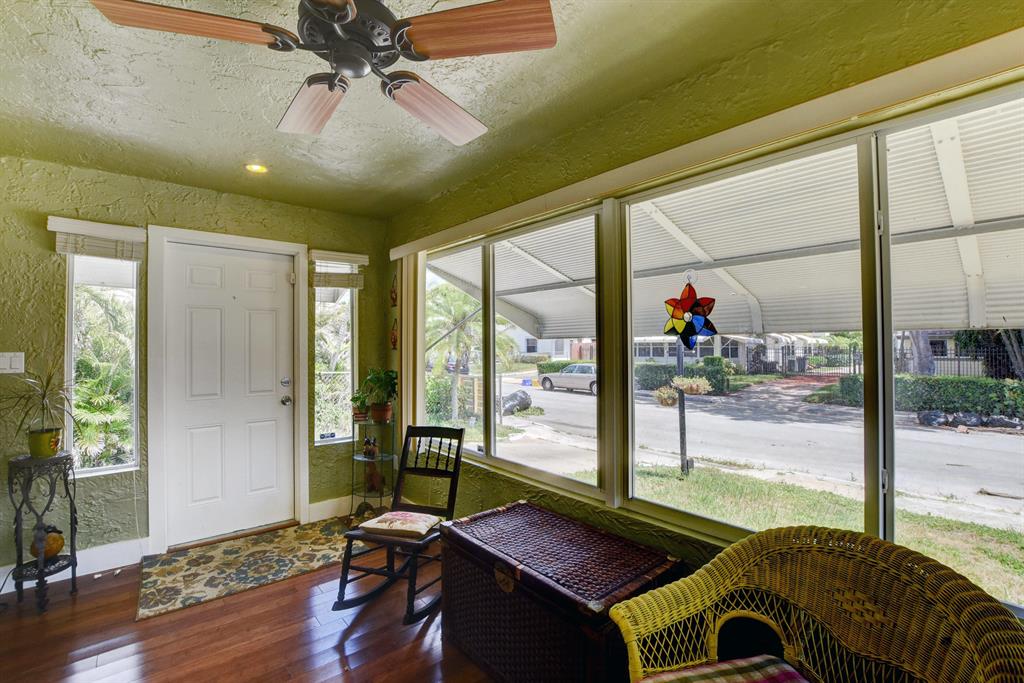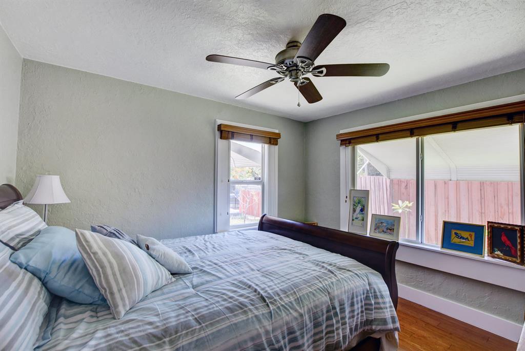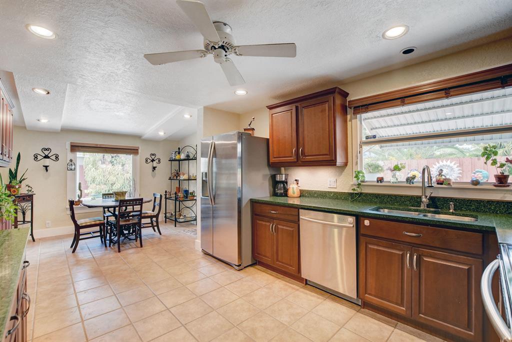 LOVELY 3 BED 1 BATH very well-maintained and updated Spanish Revival home. Features hurricane impact windows, solid carbonized 5/8'' bamboo wood floors, porcelain tile in kitchen, updated bathroom and beautiful working fireplace. Huge updated eat-in kitchen with cherry wood cabinets, slide out drawers and silestone counter tops. Separate dining room. Exterior stucco walls, low pitched roof & eaves with no overhang. New Roof in 2006. New 17 seer HVAC in Jan 2013. Upgraded r-30 insulation and 6 panel metal insulated interior doors. UV protected exterior paint and solar flex paint on roof. Security lighting. Complete sprinkler system. Oversized driveway with 1.5 car garage and a spacious fenced yard.